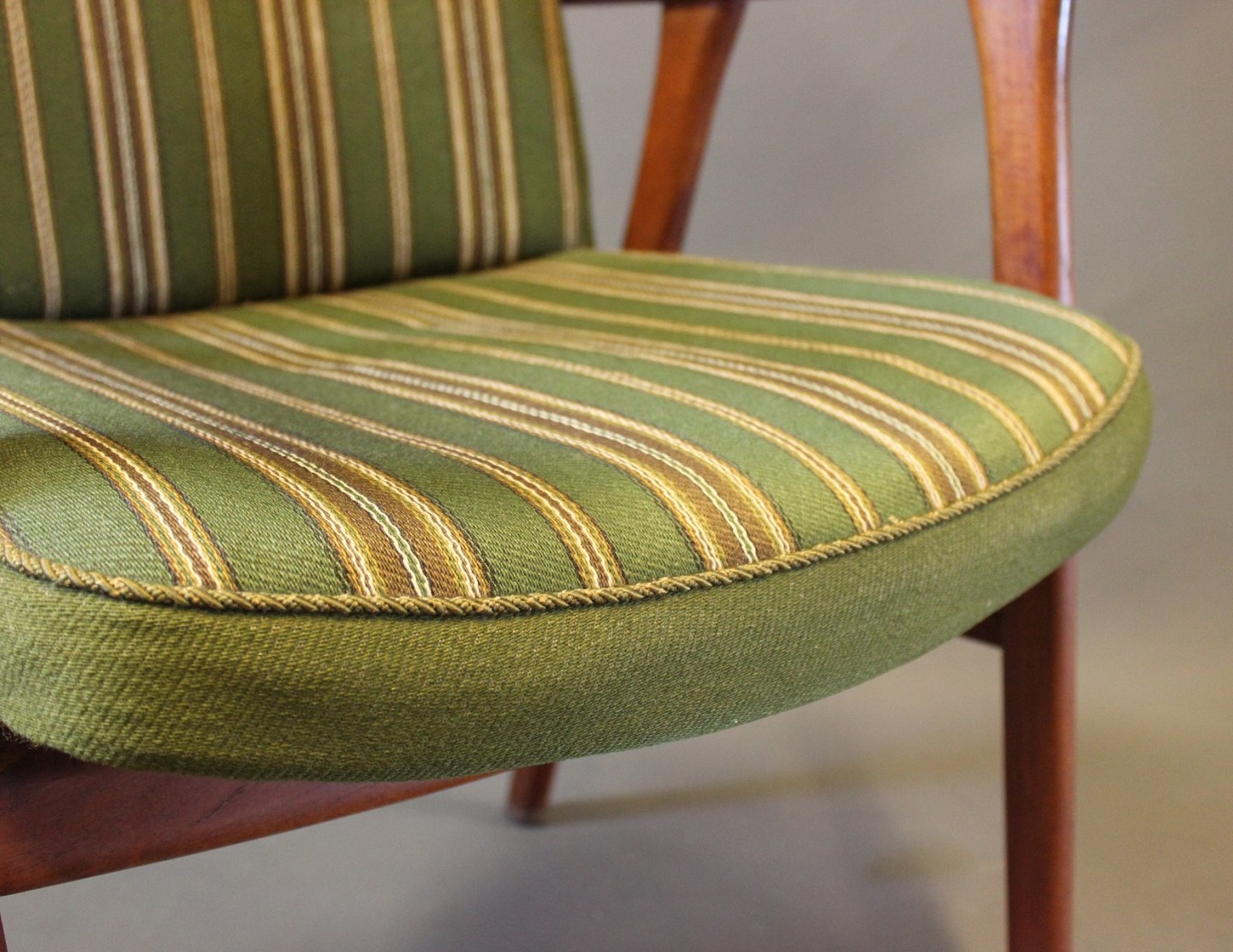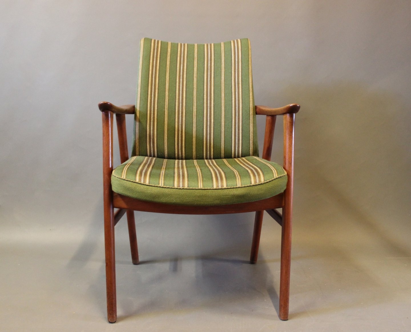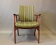 Armstol i teak og polstret i grønt stof af Dansk design fra 1960erne. Stolen er i rigtig flot brugt stand.