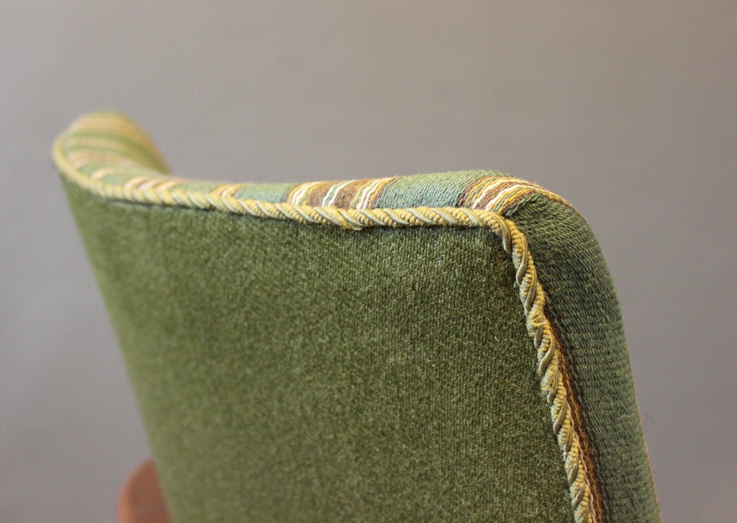 Armstol i teak og polstret i grønt stof af Dansk design fra 1960erne.