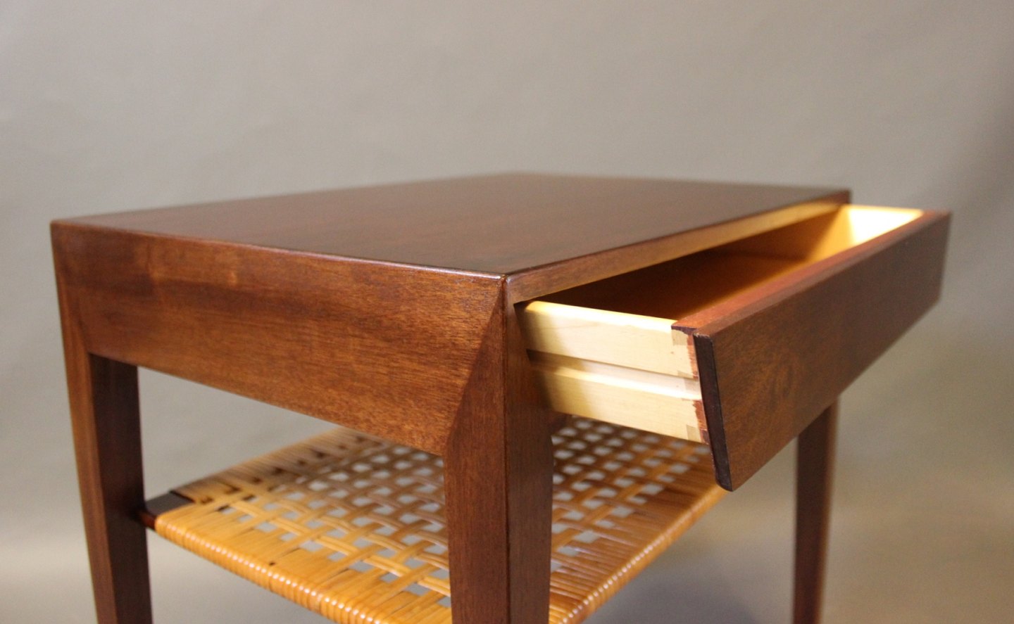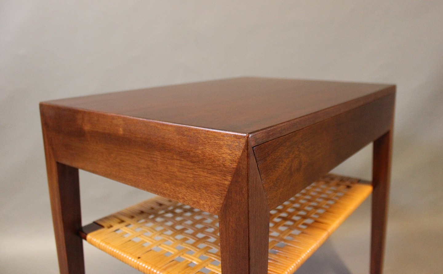 SolgtLille sengebord i mahogni med flet hylde af Severin Hansen for Haslev Møbelfabrik. Bordet er i rigtig flot stand.