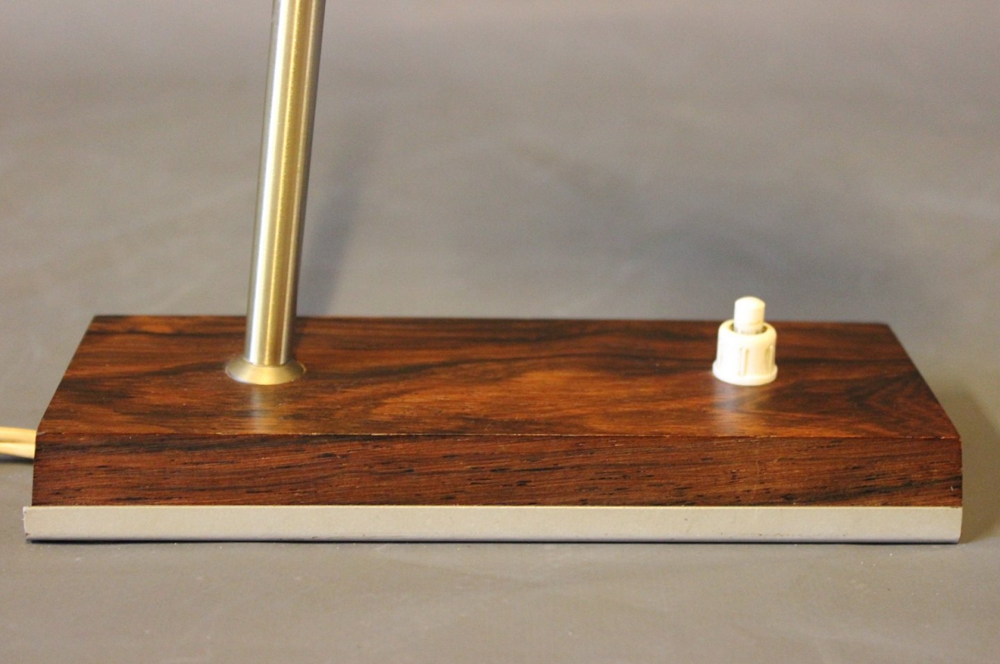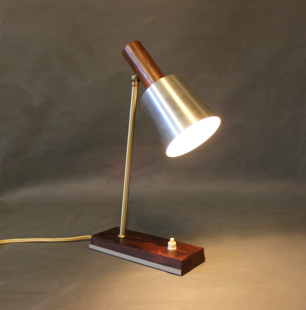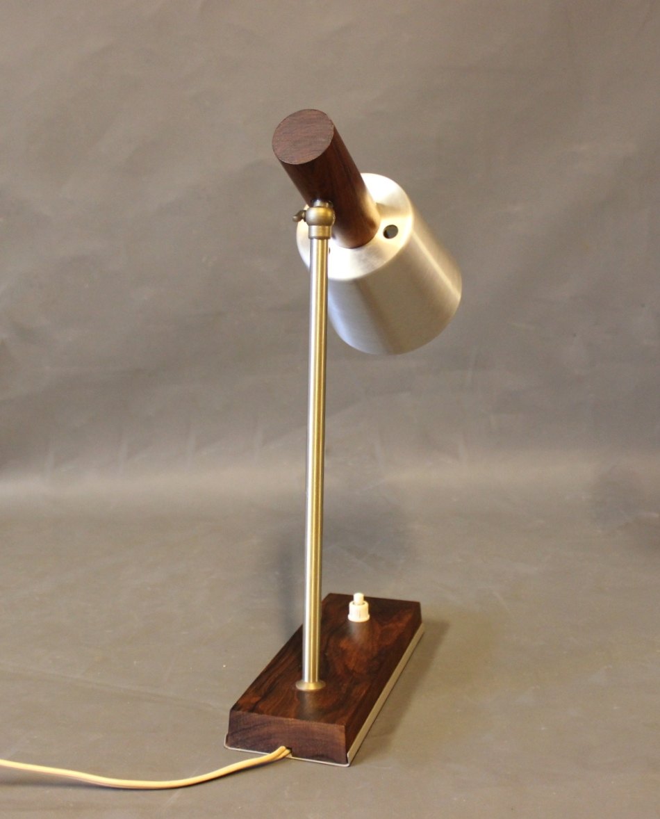 SoldSmall table lamp with shade of steel and frame of rosewood. The lamp is of danish design from the 1960s.
