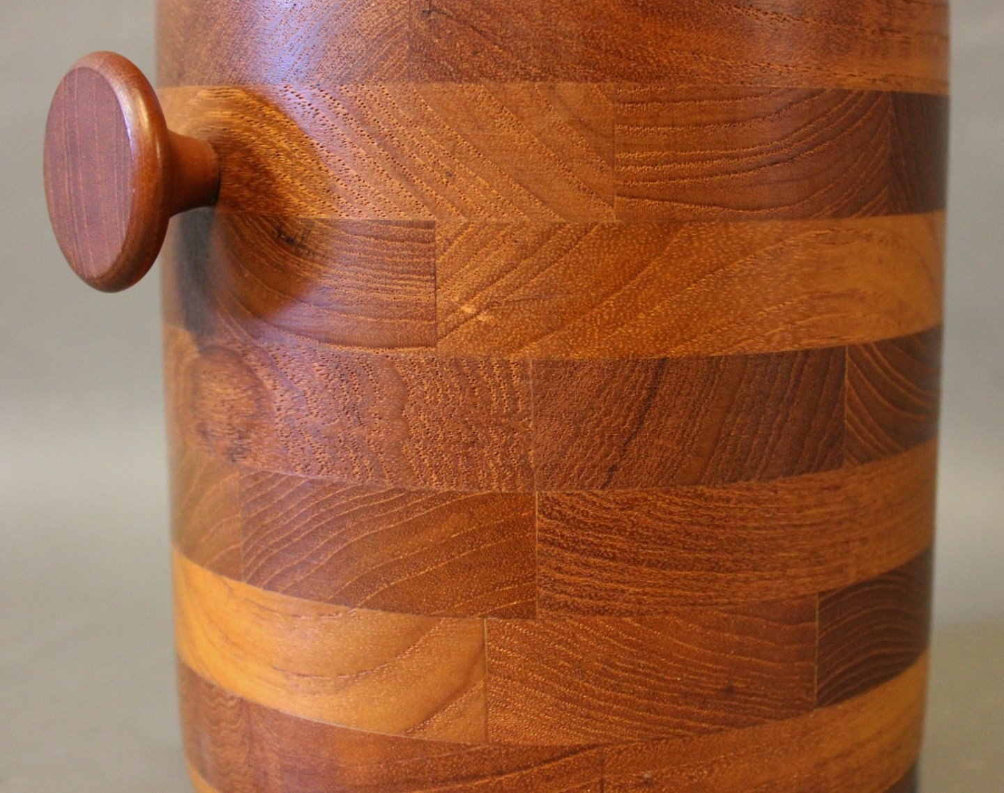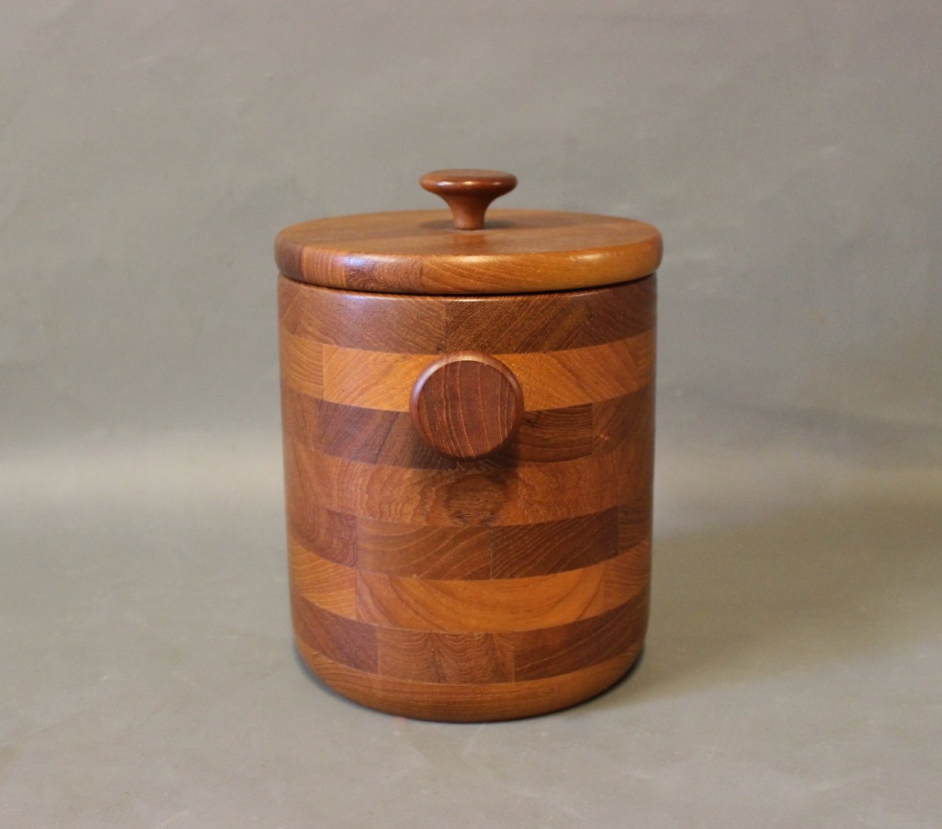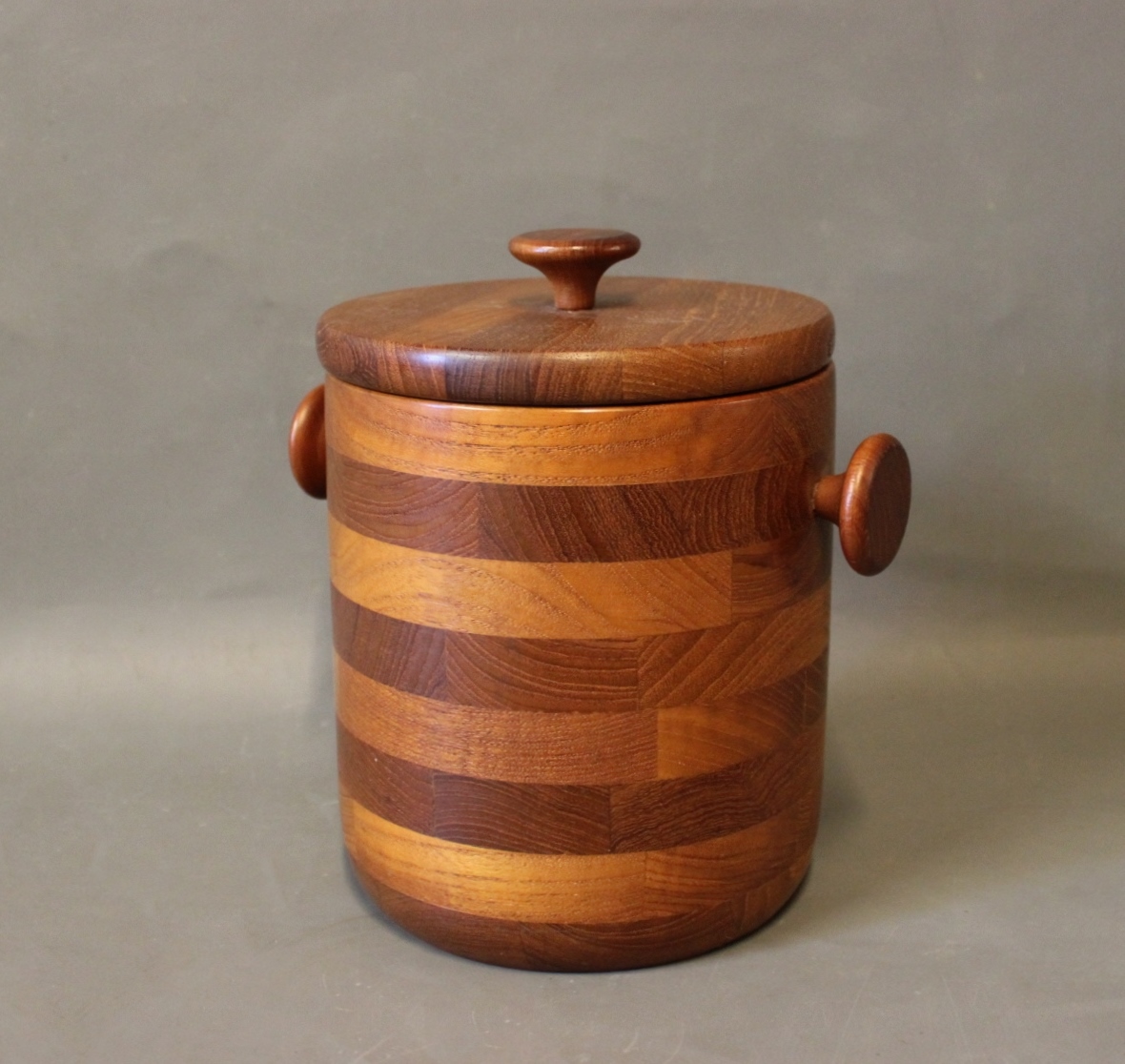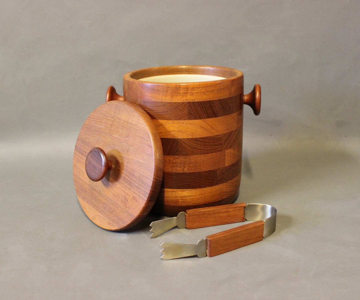 SolgtIsspand i teak med tilhørende tang, af Wiggers Denmark fra 1960erne.