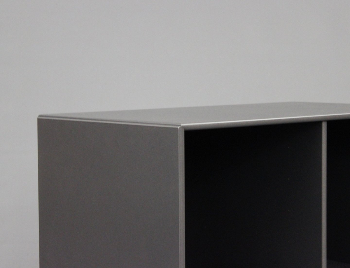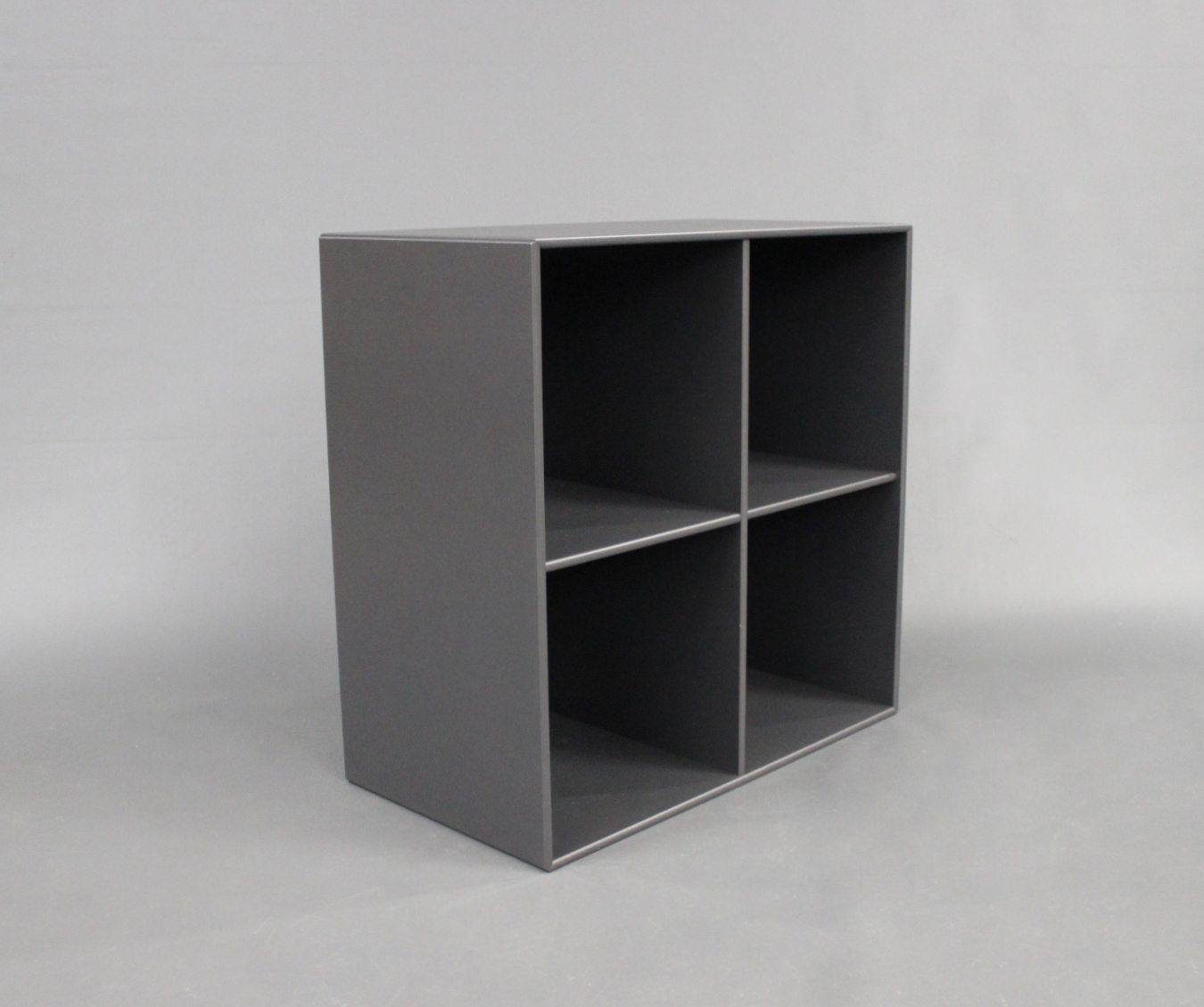 SoldThis Montana bookcase, model 1112, in dark gray exudes both elegance and functionality. With four large shelves, it offers ample space for storing books, decorations and other items. Its stylish design and versatility make it an ideal choice for any home or office.