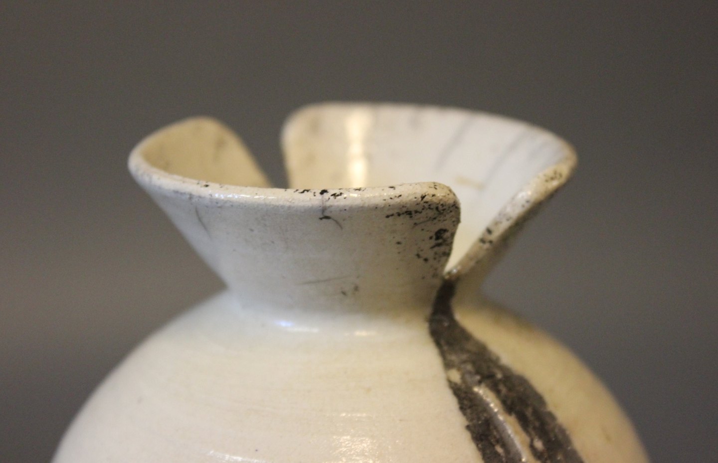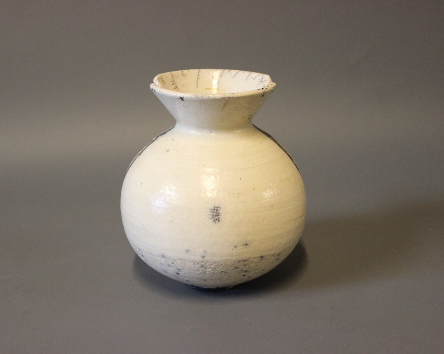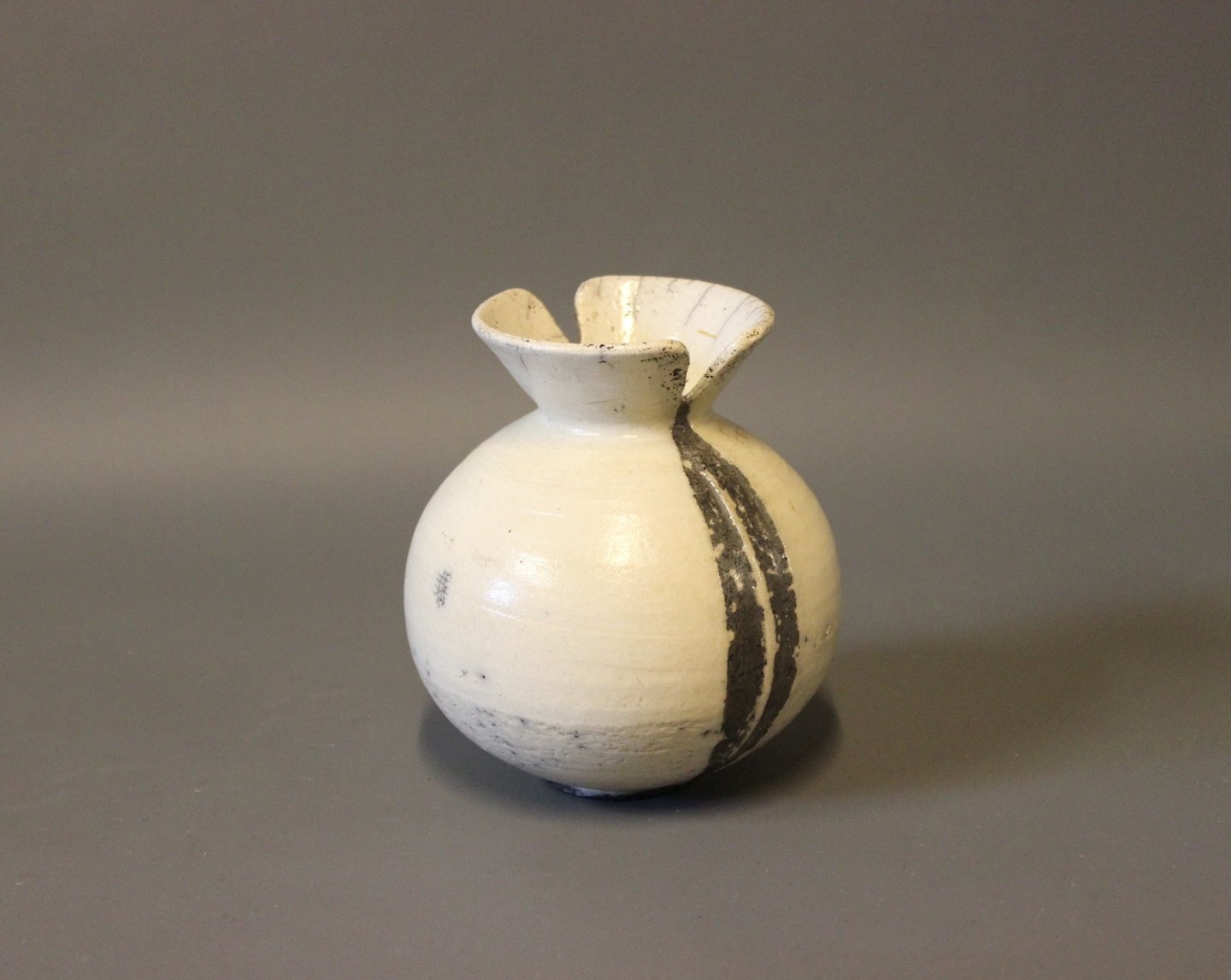 SoldSmall ceramic vase with white and grey glaze stamped GE.