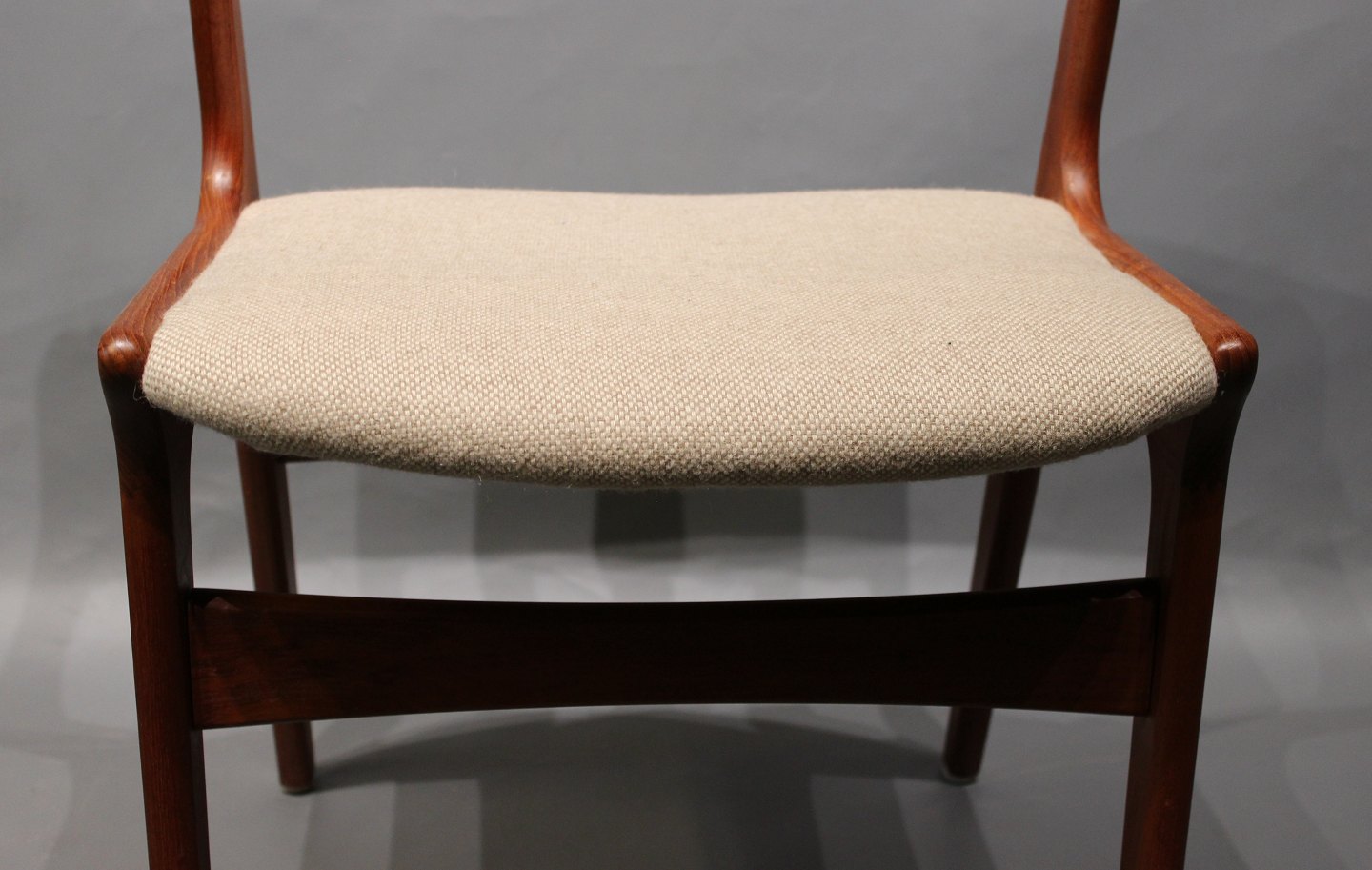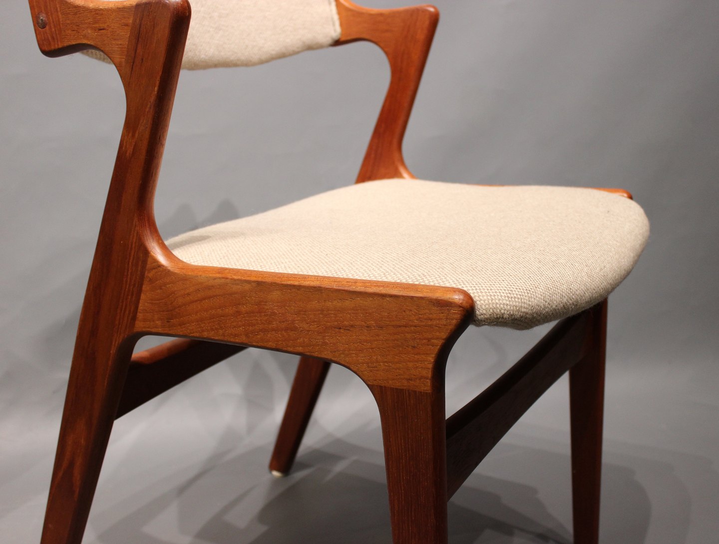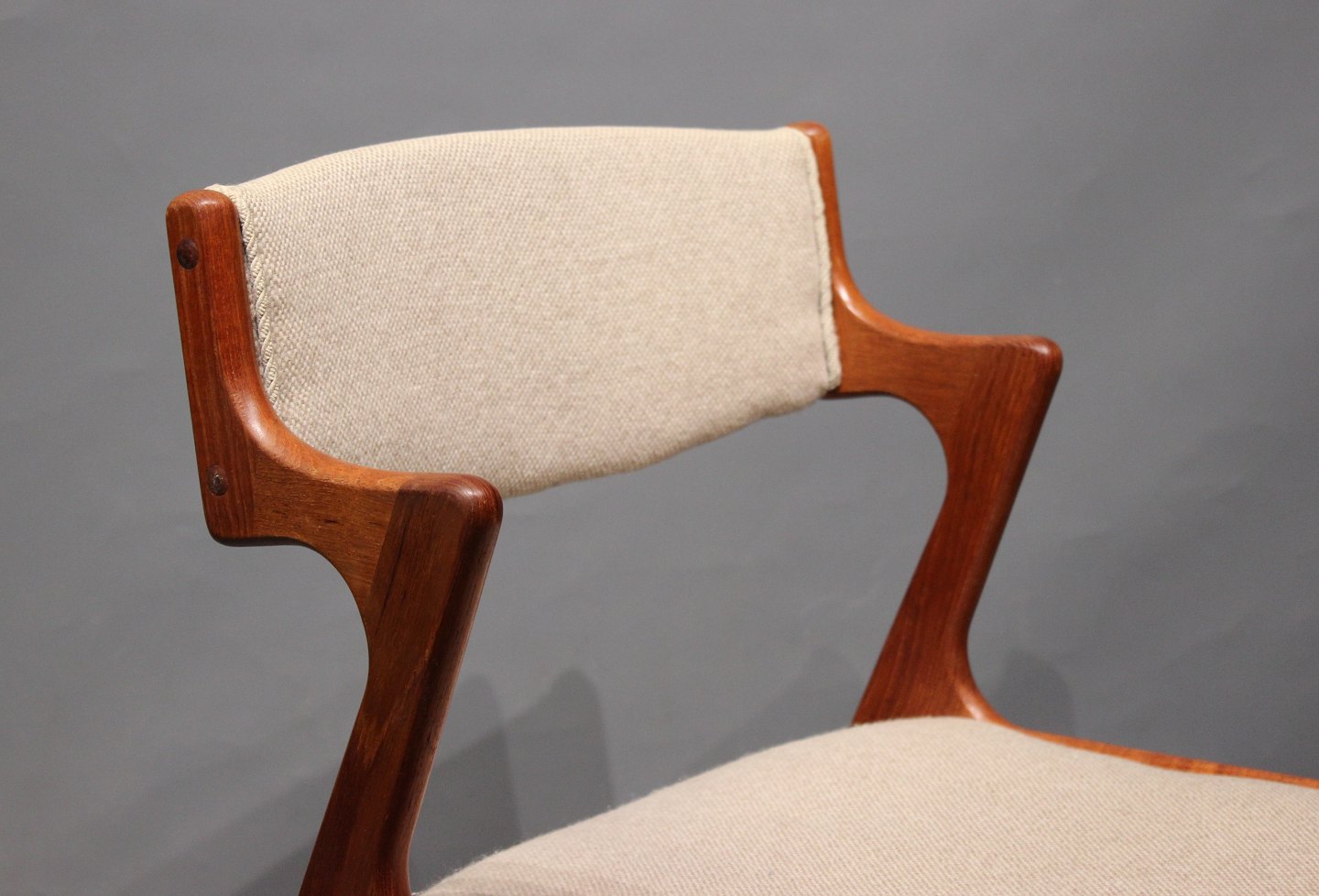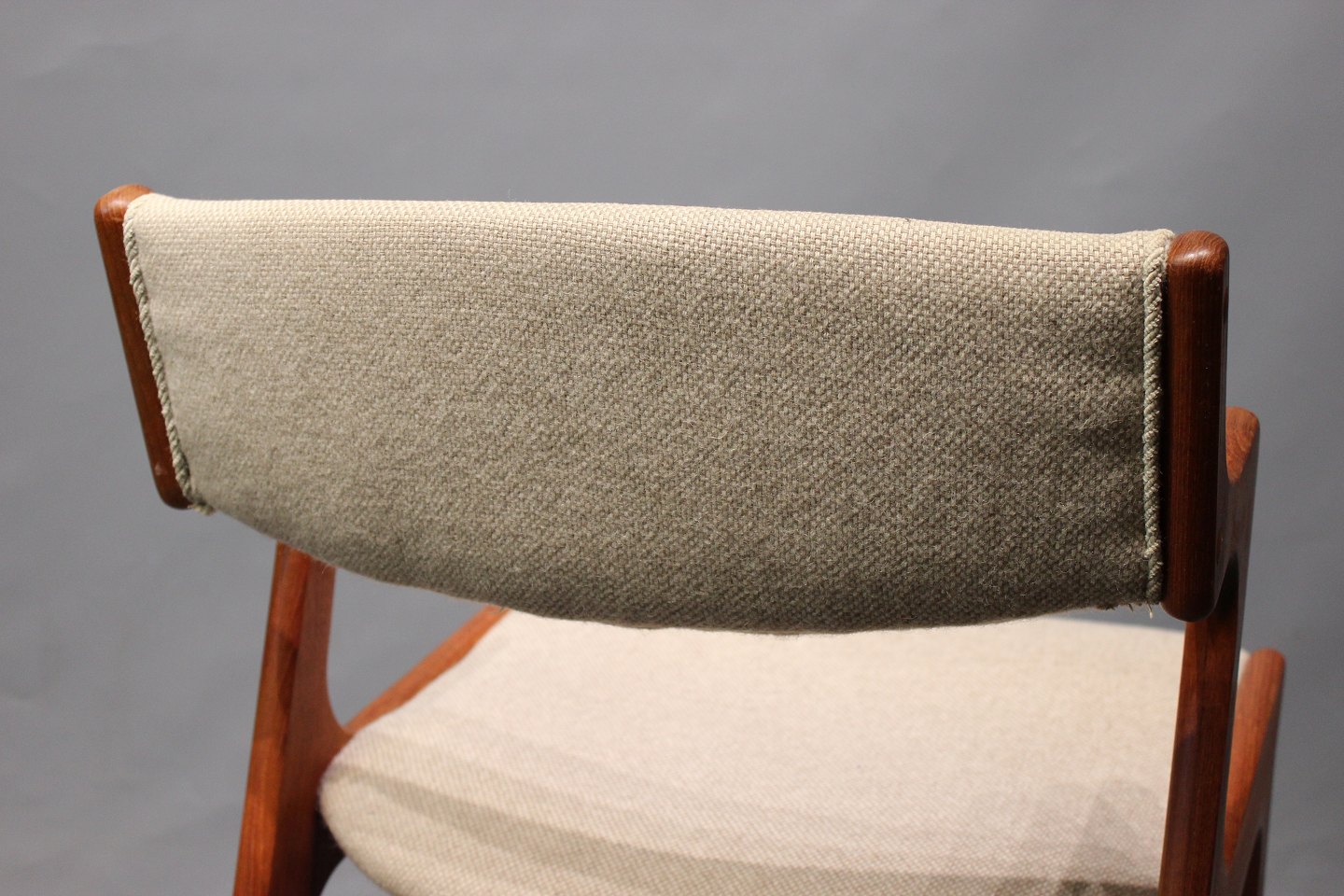 A set of 4 dining chairs in teak and light wool upholstery of danish design from Nova furniture factory and the 1960s. The chairs are in good vintage condition.