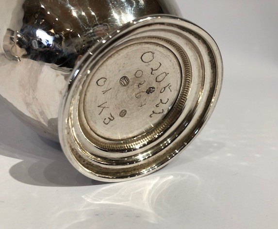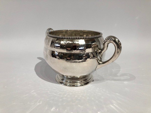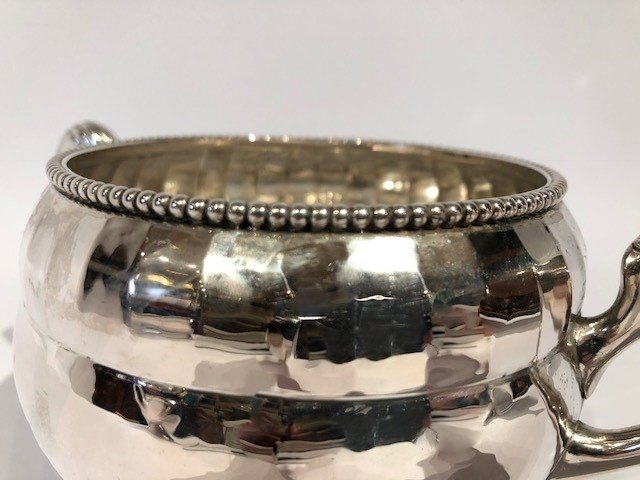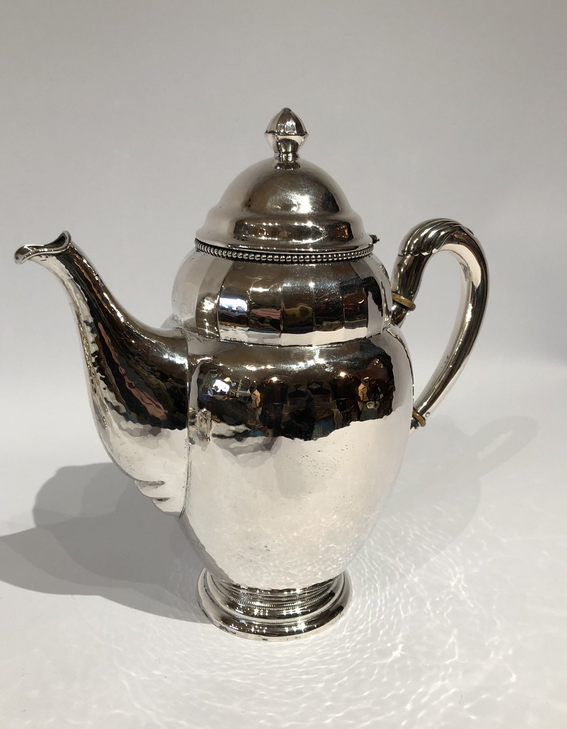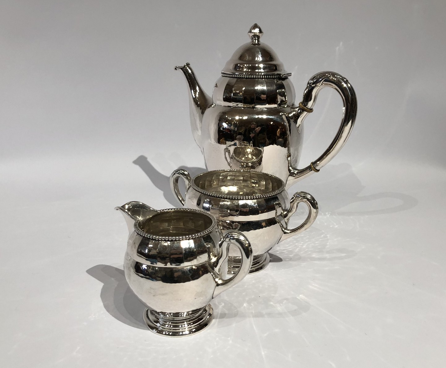 Coffee set consisting of coffee jug, sugerbowl and cream jug with delicate pearl edge and in hallmarked silver.