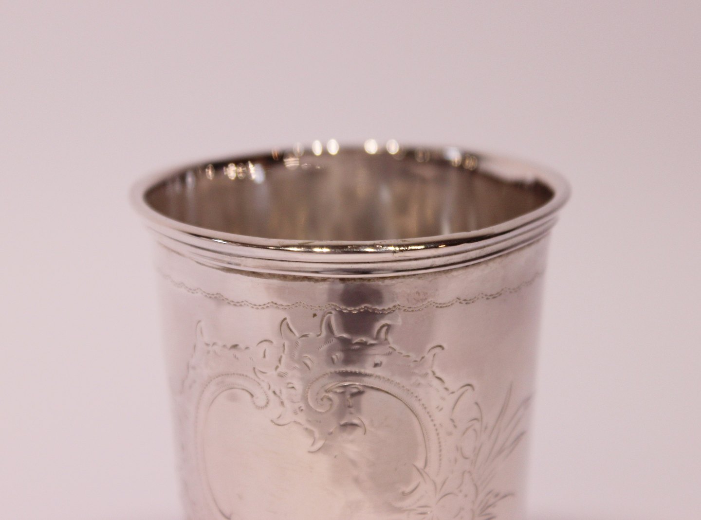 Small cup on round feet decorated with chasings in 830 silver from the start of the 18th century.