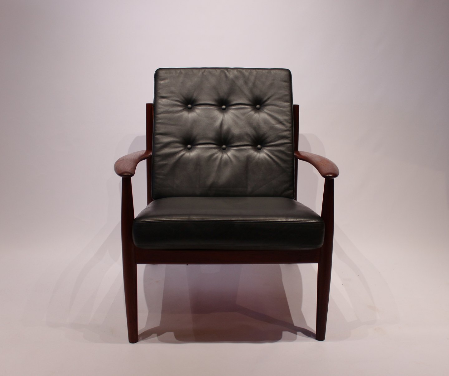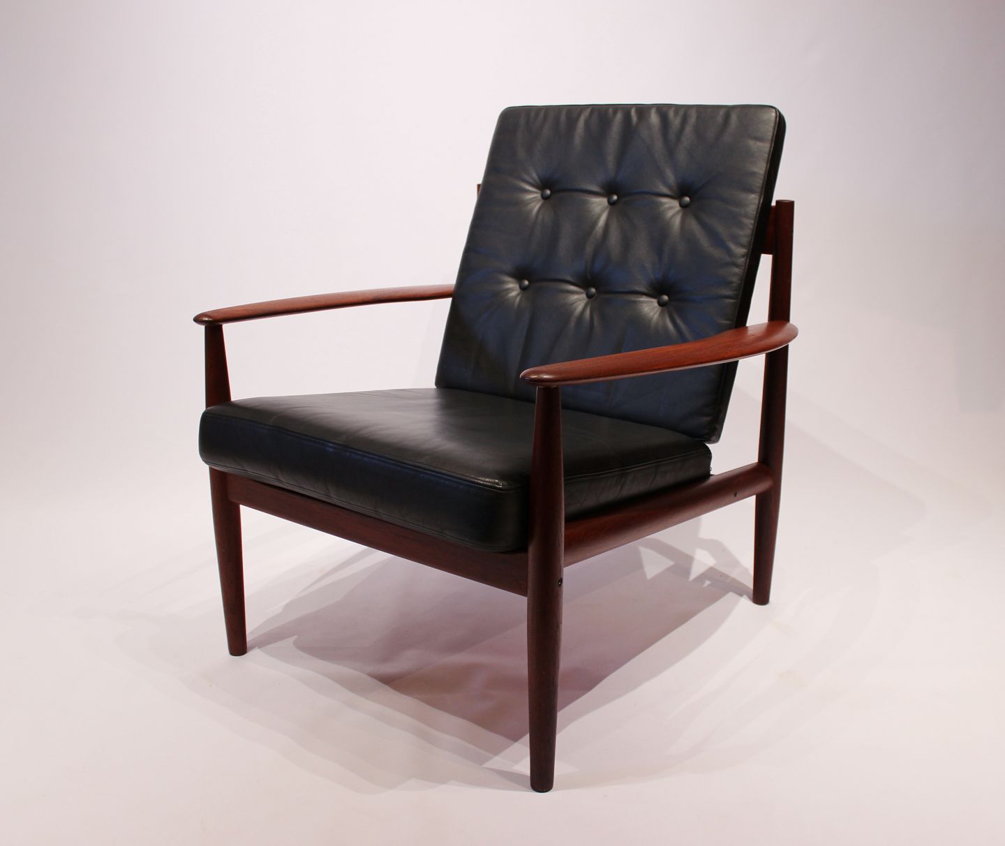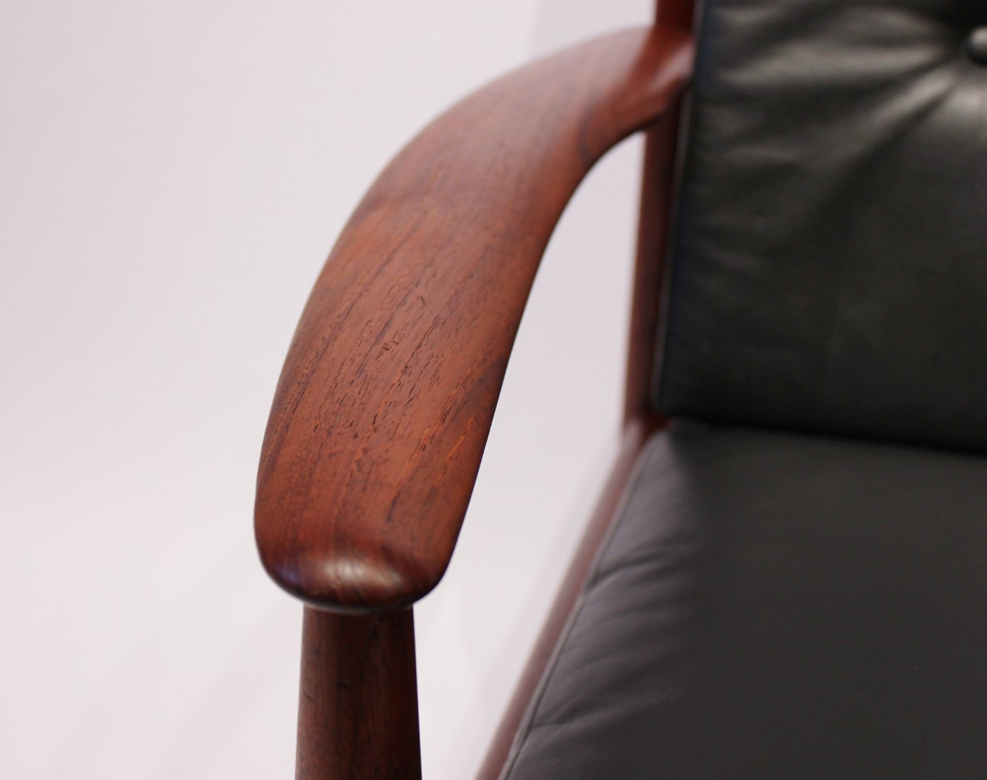 SoldEasy chair, model 118, in teak and black elegance leather designed by Grete Jalk and manufactured by France & Son in the 1960s.