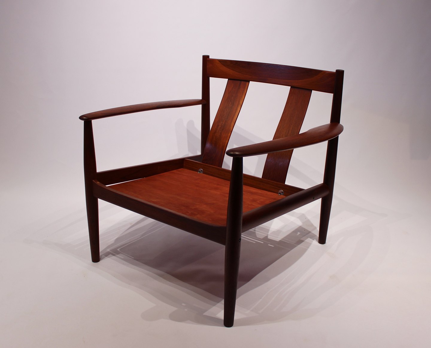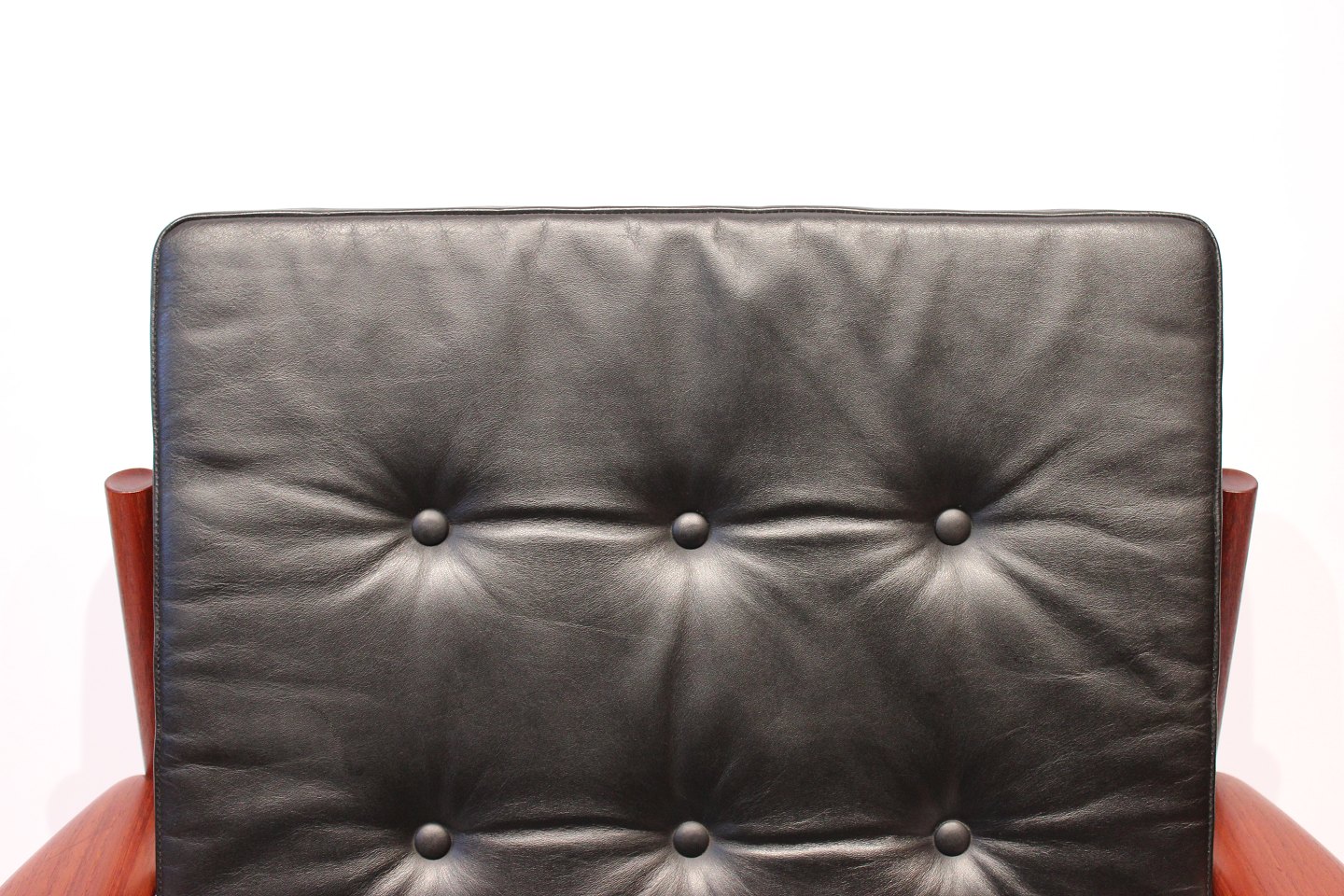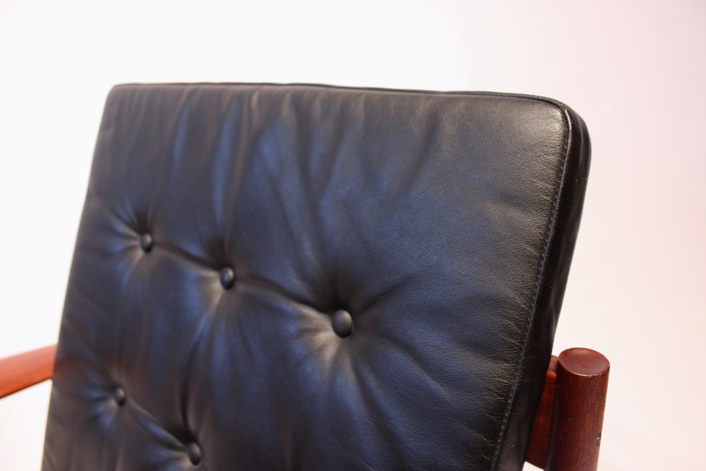 SoldEasy chair, model 118, in teak and black elegance leather designed by Grete Jalk and manufactured by France & Son in the 1960s.