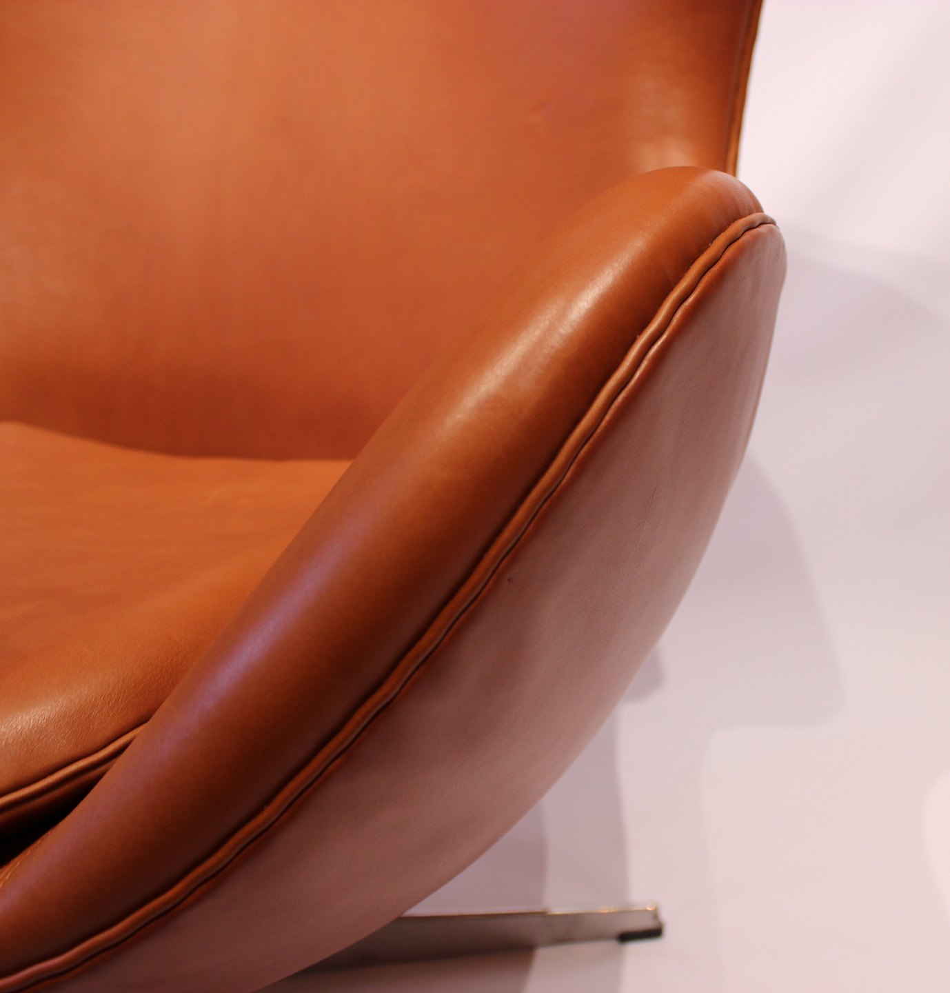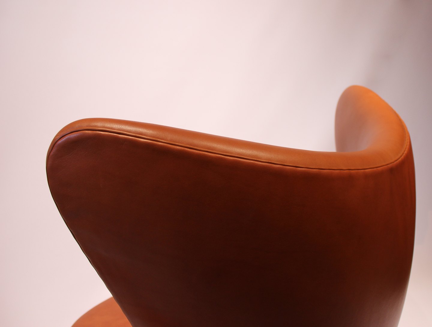 Ægget, model 3316, er et mesterværk af Arne Jacobsen og et ikonisk symbol på dansk design fra midten af det 20. århundrede. Designet i 1958 og fremstillet af Fritz Hansen, udstråler denne stol en enestående elegance og en sublim kombination af form og funktion. Den originale polstring med cognac læder tilføjer en luksuriøs følelse til stolen, og dens flotte stand understreger dens tidløse skønhed og håndværksmæssige kvalitet. Arne Jacobsens geniale designvision og innovative tilgang til materialer og former skinner tydeligt igennem i Ægget, der udgør en perfekt blanding af komfort, stil og funktionalitet. Denne stol vil være et imponerende og sofistikeret blikfang i enhver indretning, der søger det bedste inden for dansk møbeldesign.