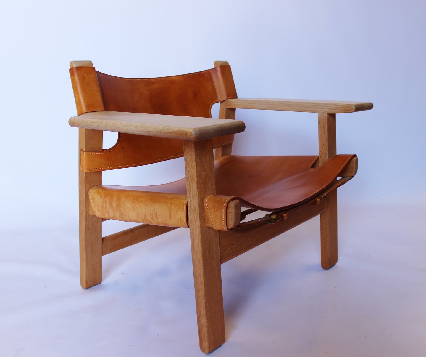 SoldThe Spanish chair, model BM2226, designed by Børge Mogensen in 1958. The chair is in oak and with cognac colored patinated leather from the 1960s.