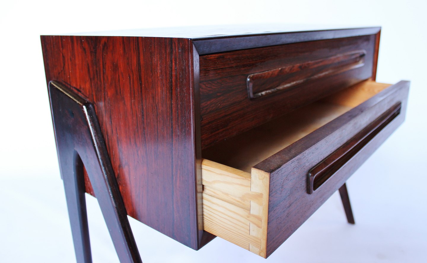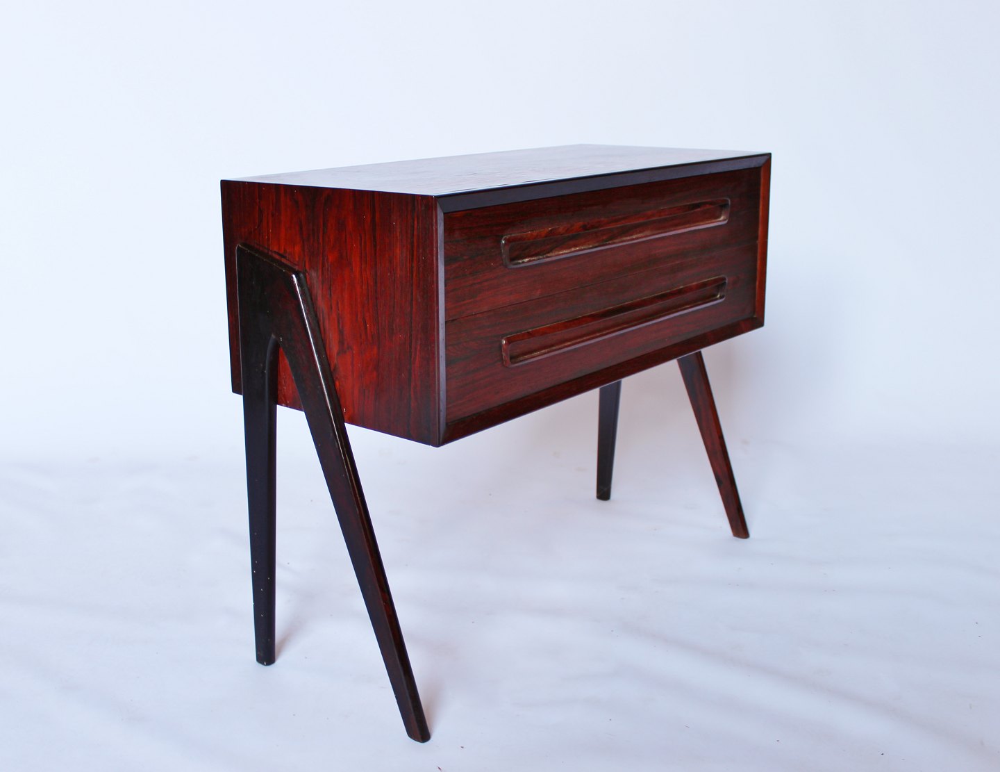 SoldSmall rosewood chest of drawers with two drawers of danish design from the 1960s.