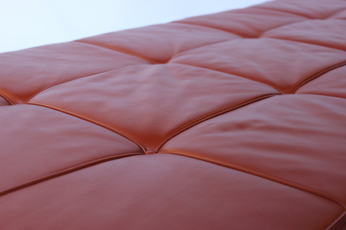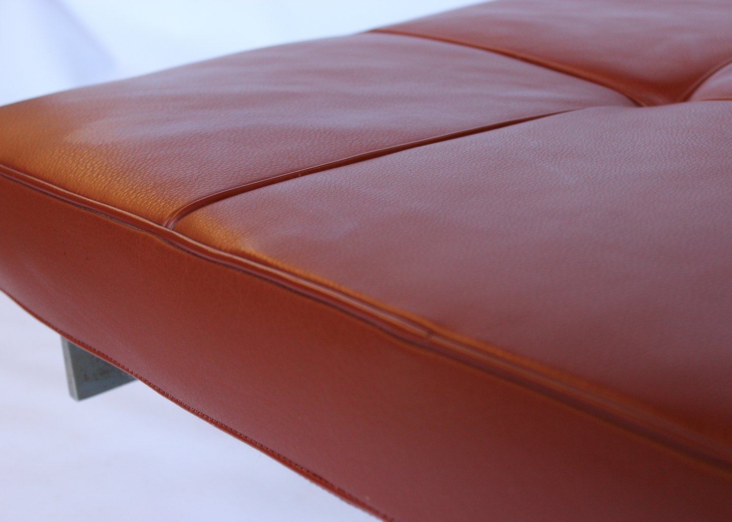 With its timeless design and luxurious cognac leather upholstery, the daybed exudes a sublime elegance. It is simple and streamlined, which is characteristic of Kjærholm's signature style. It is not just a piece of furniture, but a work of art that captures attention with its simple yet sophisticated appearance.