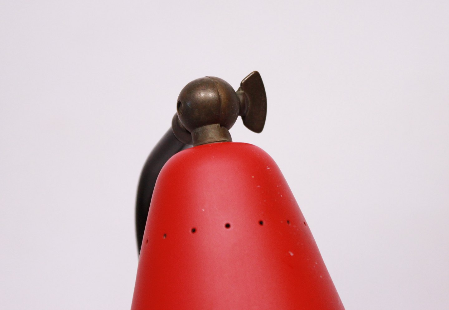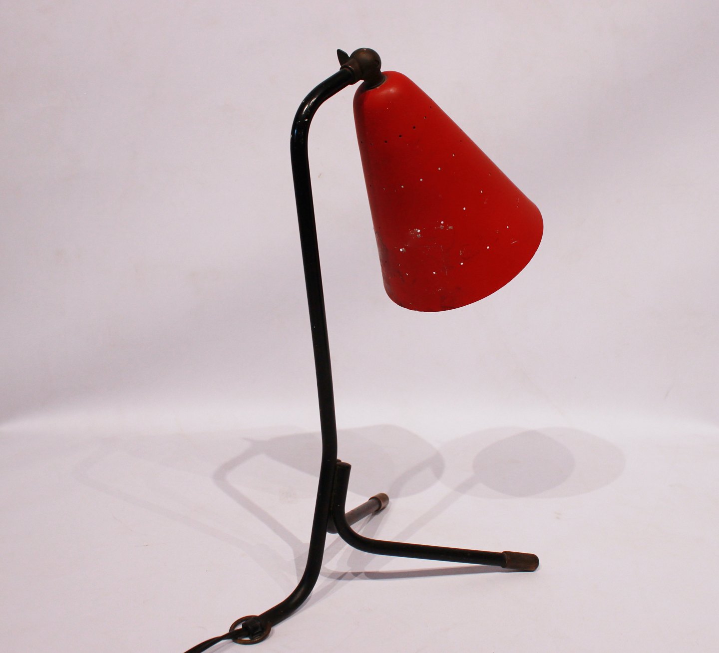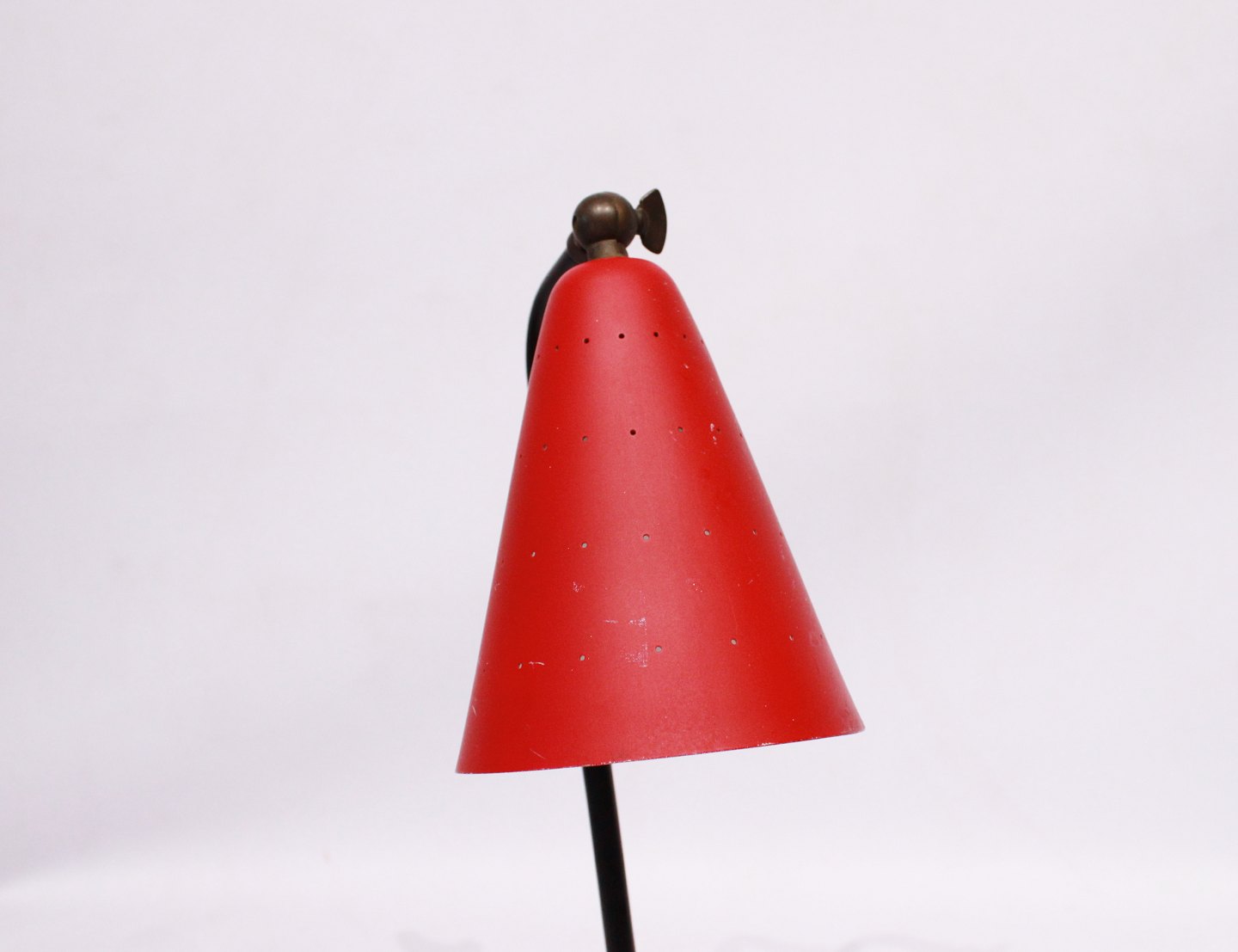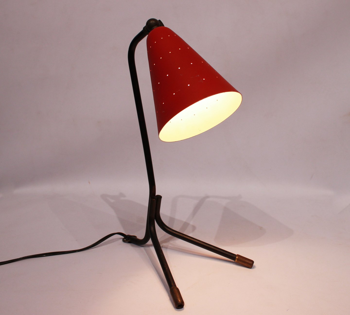 SoldTablelamp with red metal shade by Svend Aage Holm Sørensen from the 1950s.