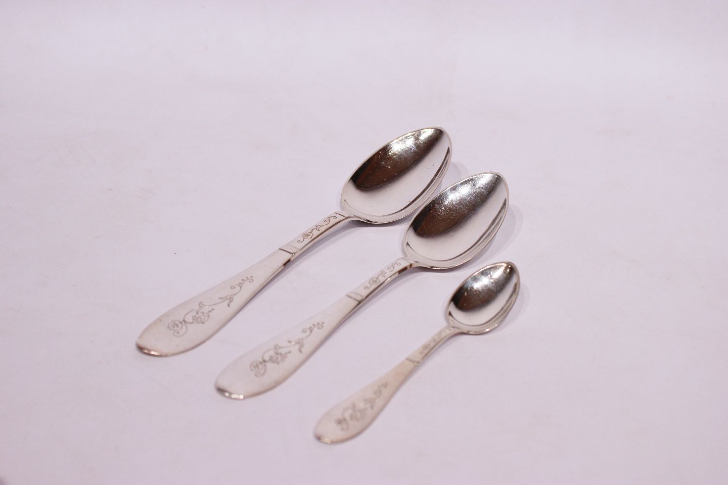 Dinner spoon, dessert spoon and tea spoon in Wedellsborg.