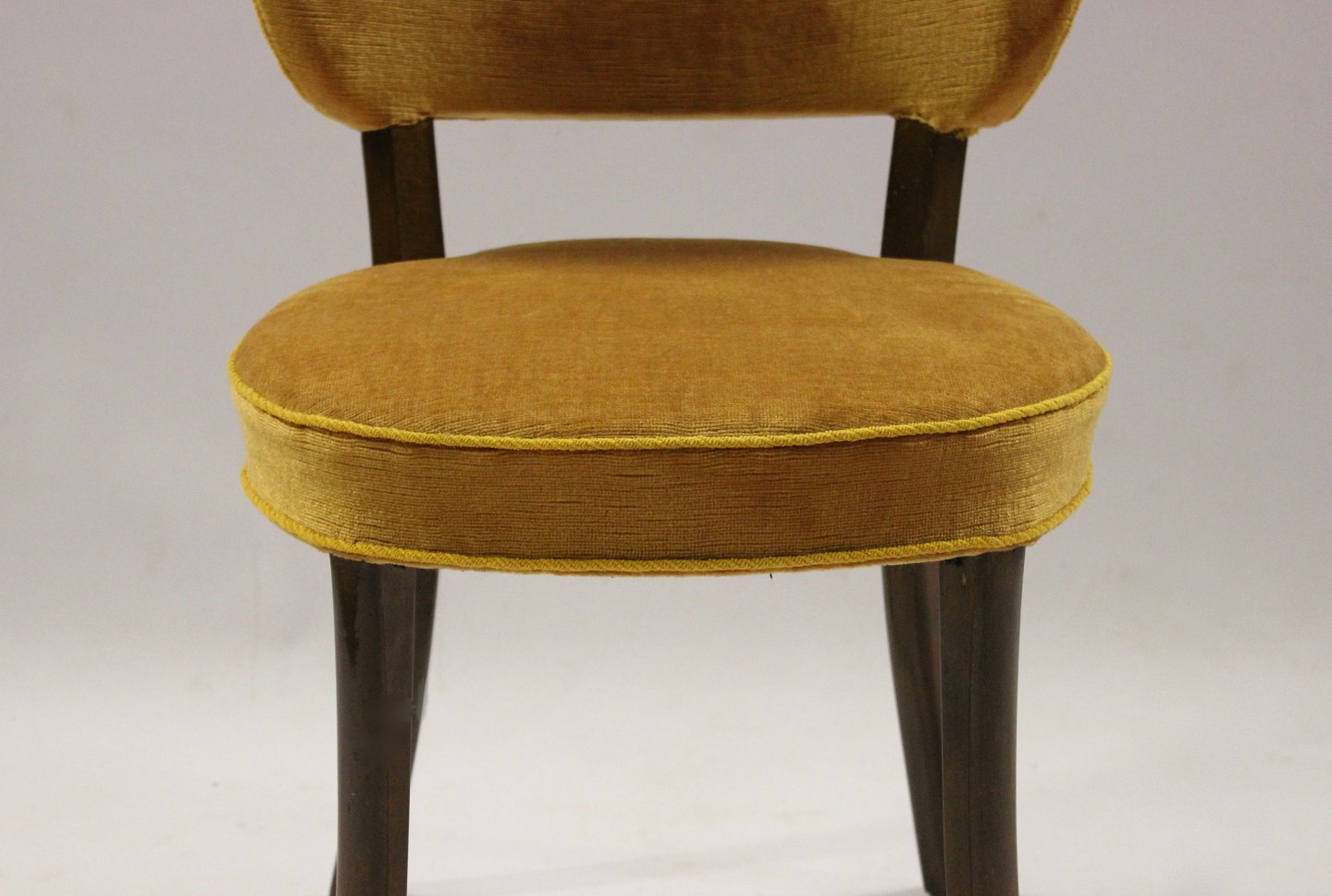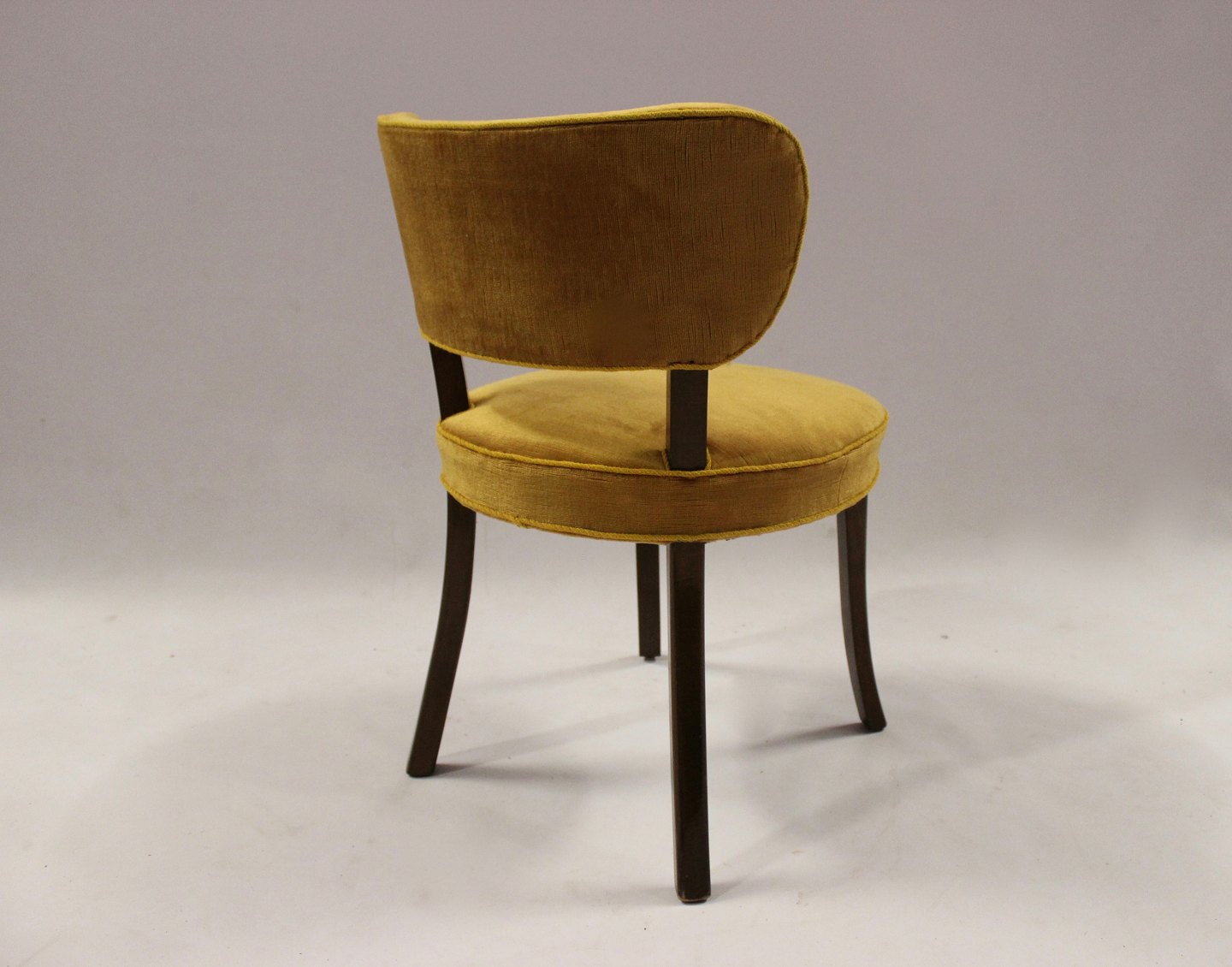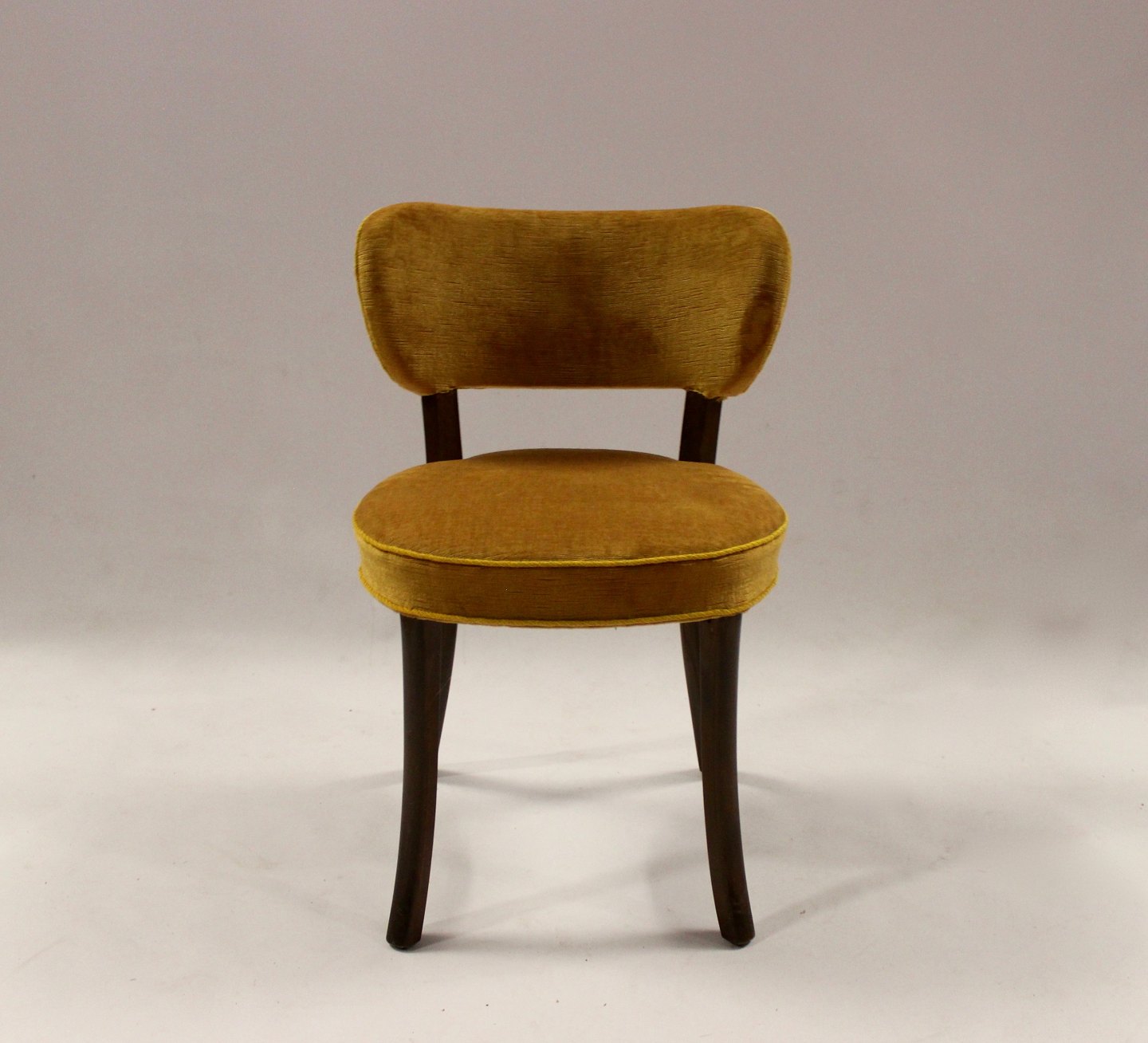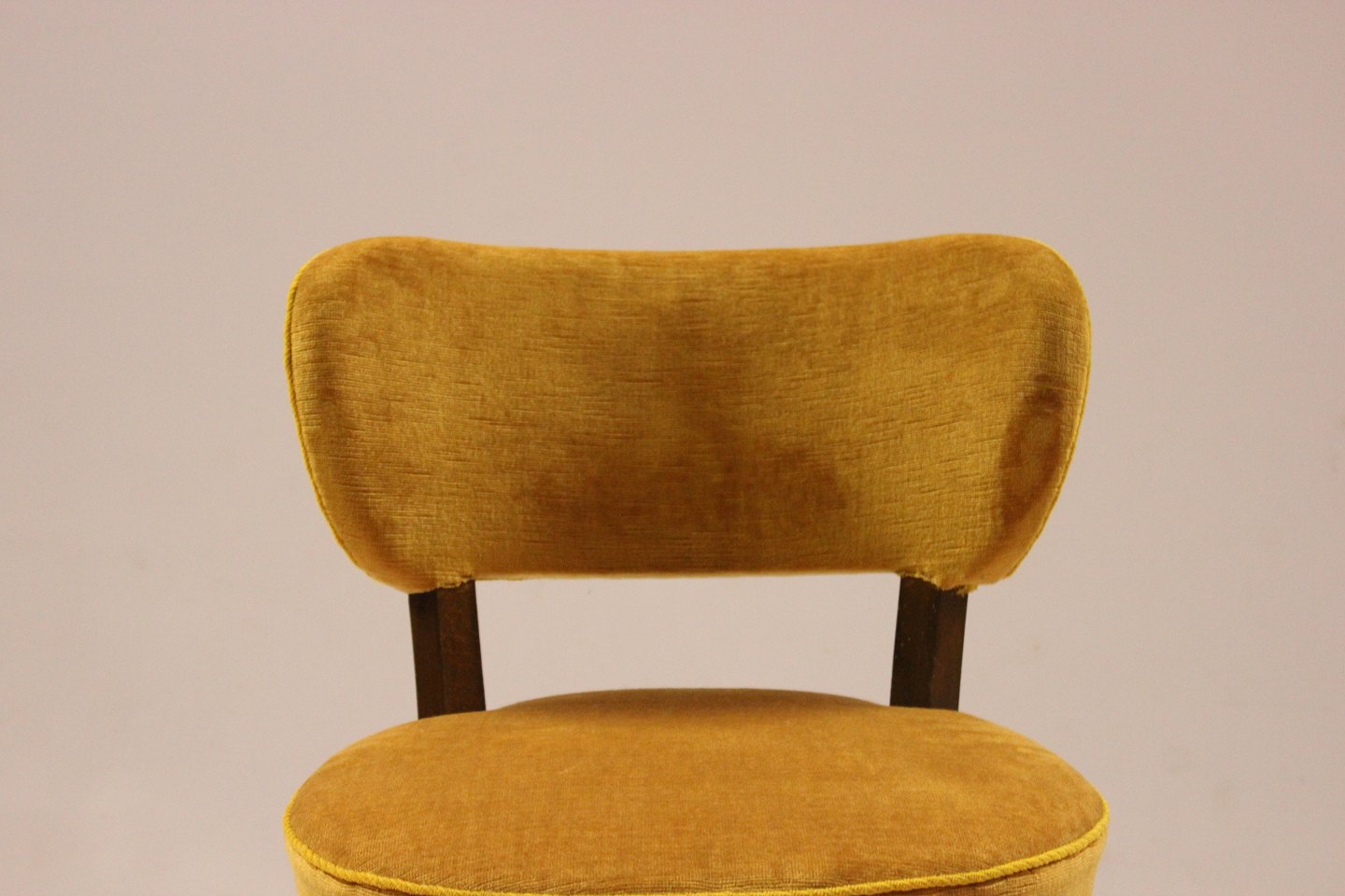 Lille antik stol i mahogni og polstret i gult stol fra 1930erne. Stolen er i flot brugt stand.