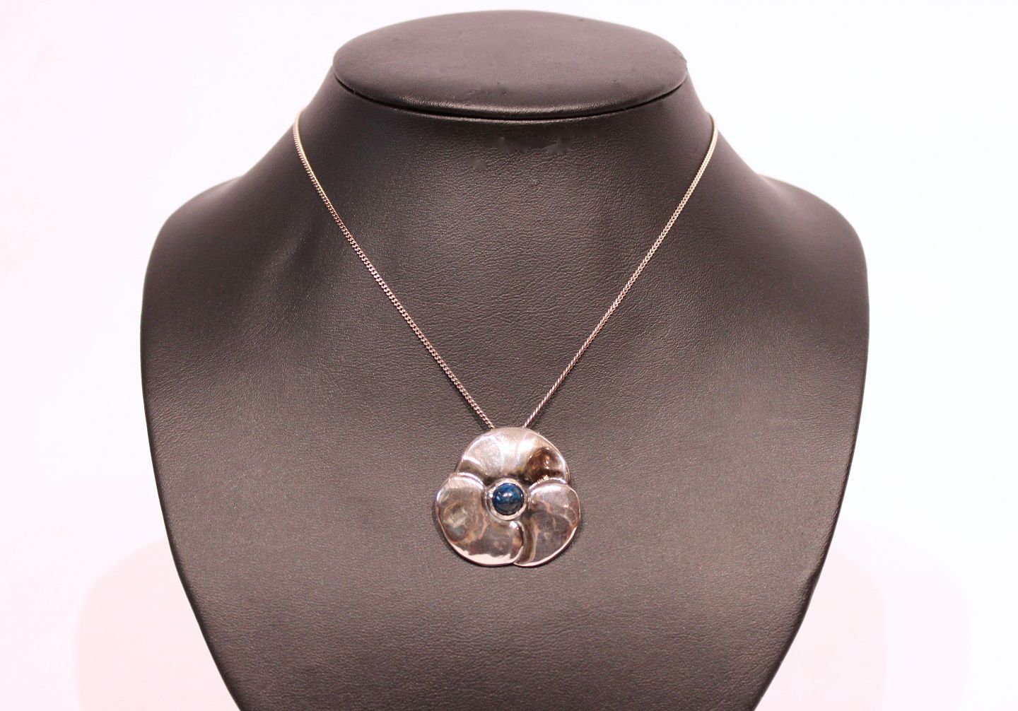 Rundt vedhæng med blå sten af 830 sølv. Lignende kæde kan købes seperat.
