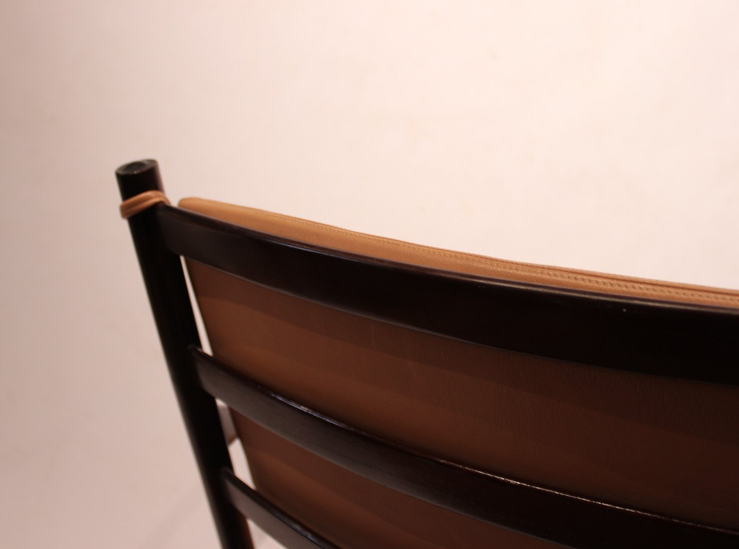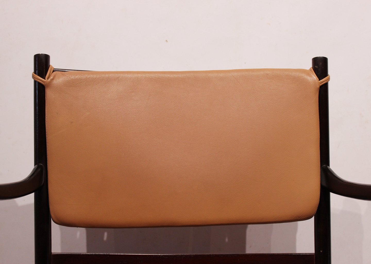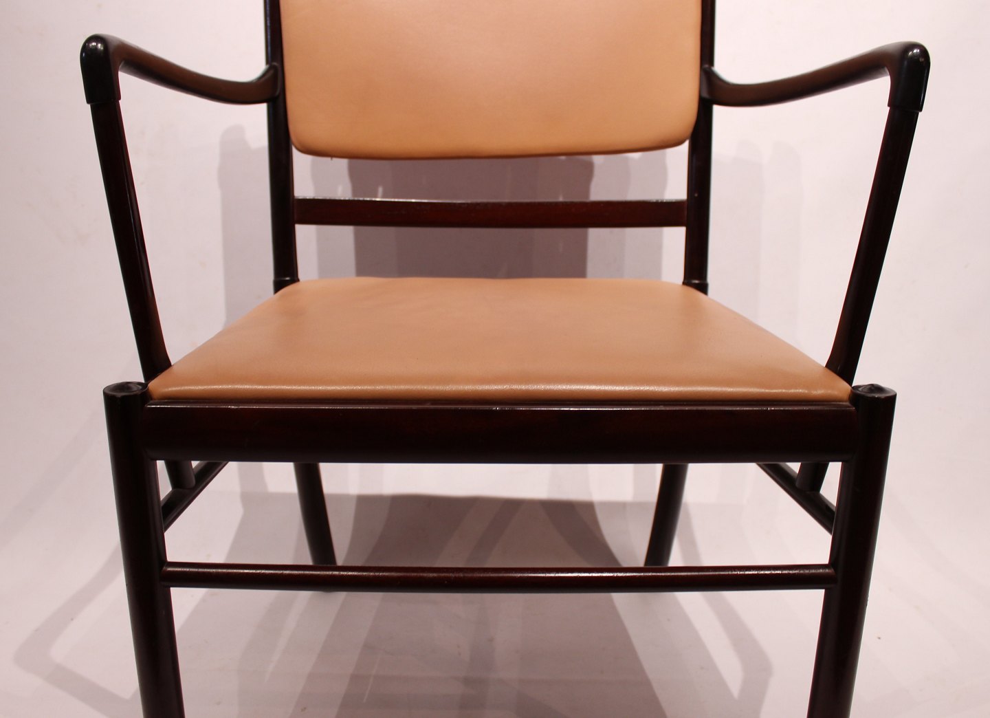 SoldArmchair in mahogany and light brown leather designed by Ole Wanscher and manufactured by P. Jeppesen. The chair is in great vintage condition.
