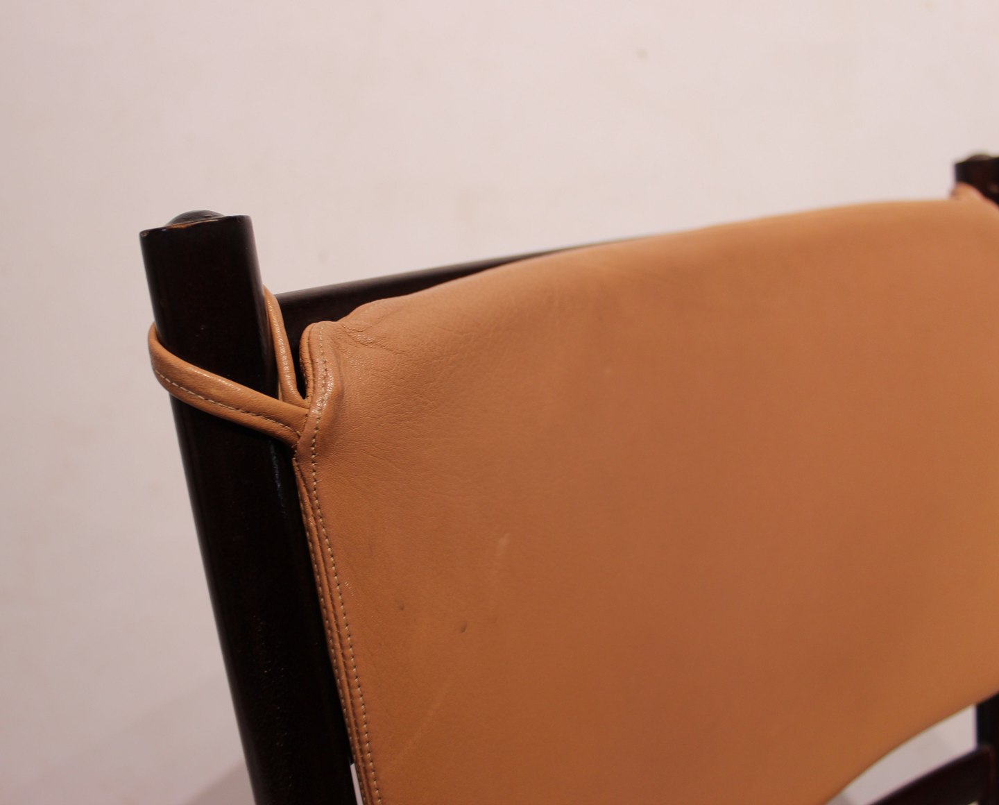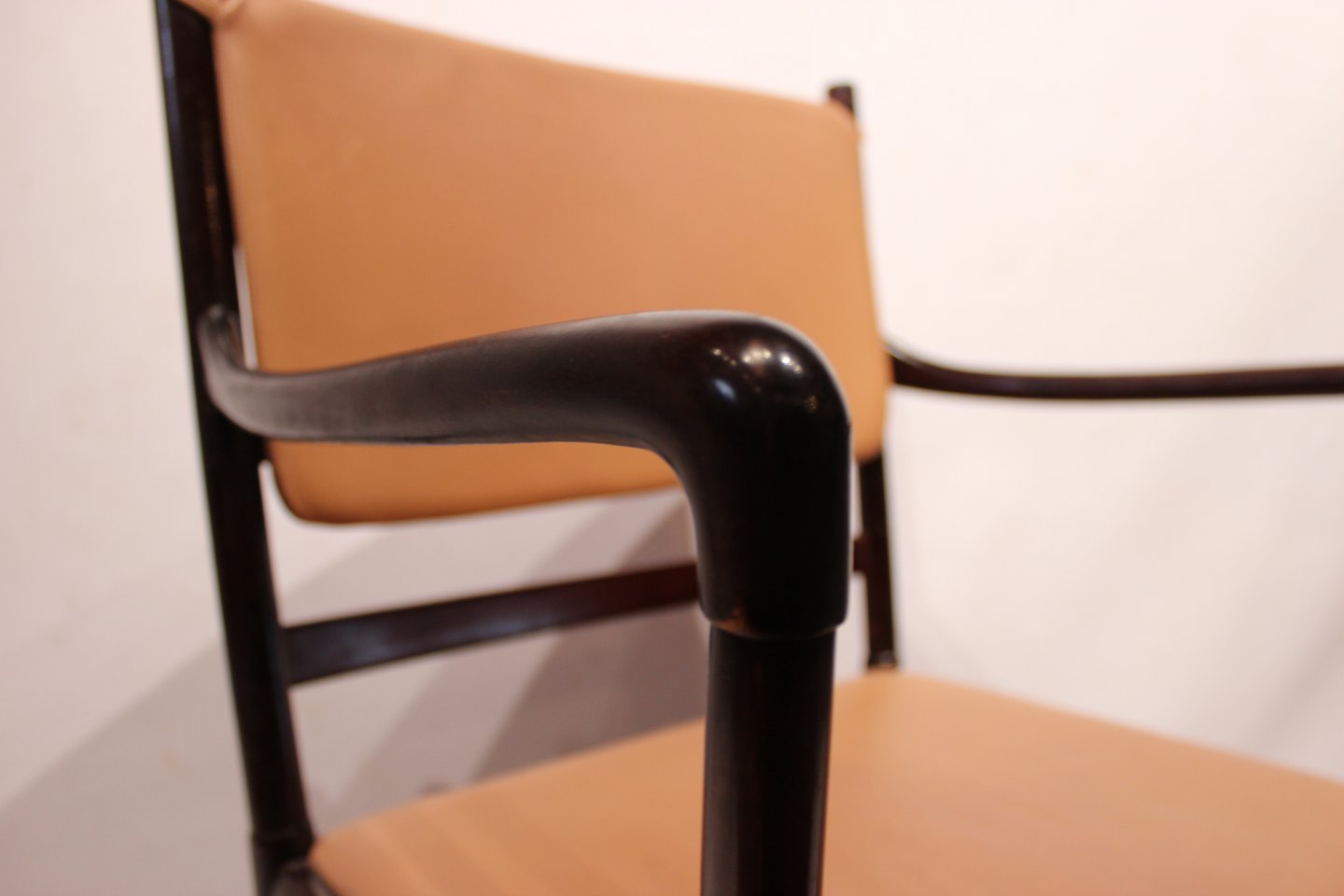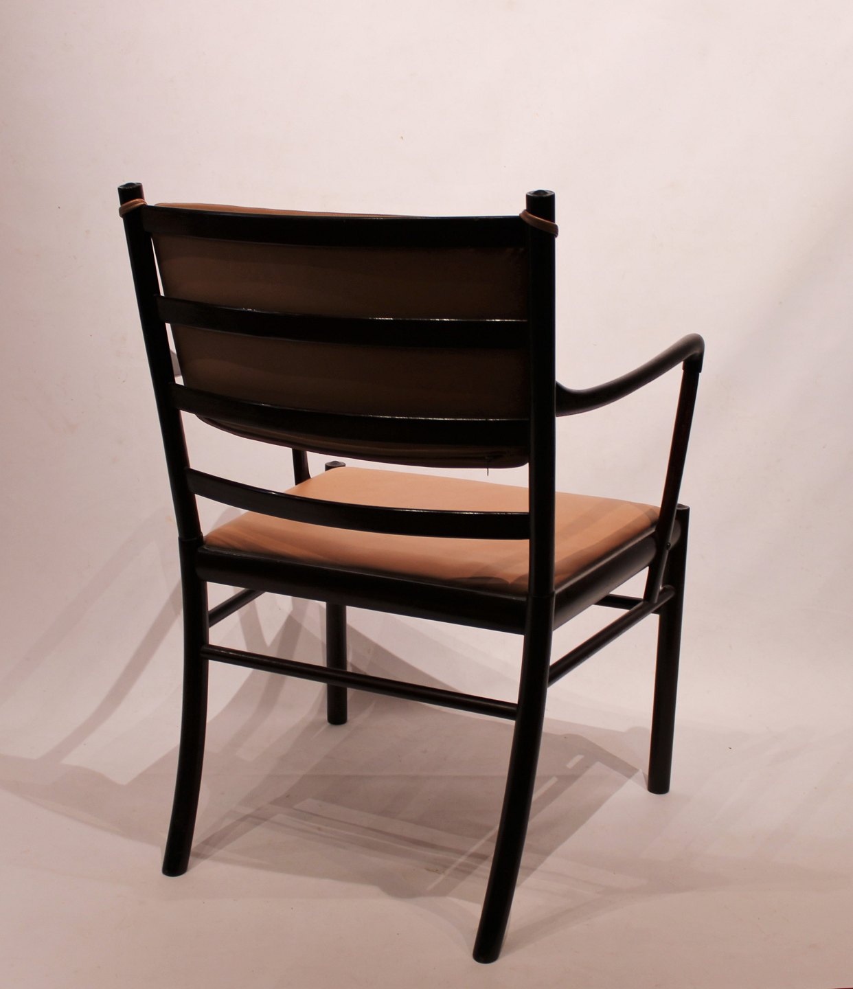 SoldArmchair in mahogany and light brown leather designed by Ole Wanscher and manufactured by P. Jeppesen. The chair is in great vintage condition.