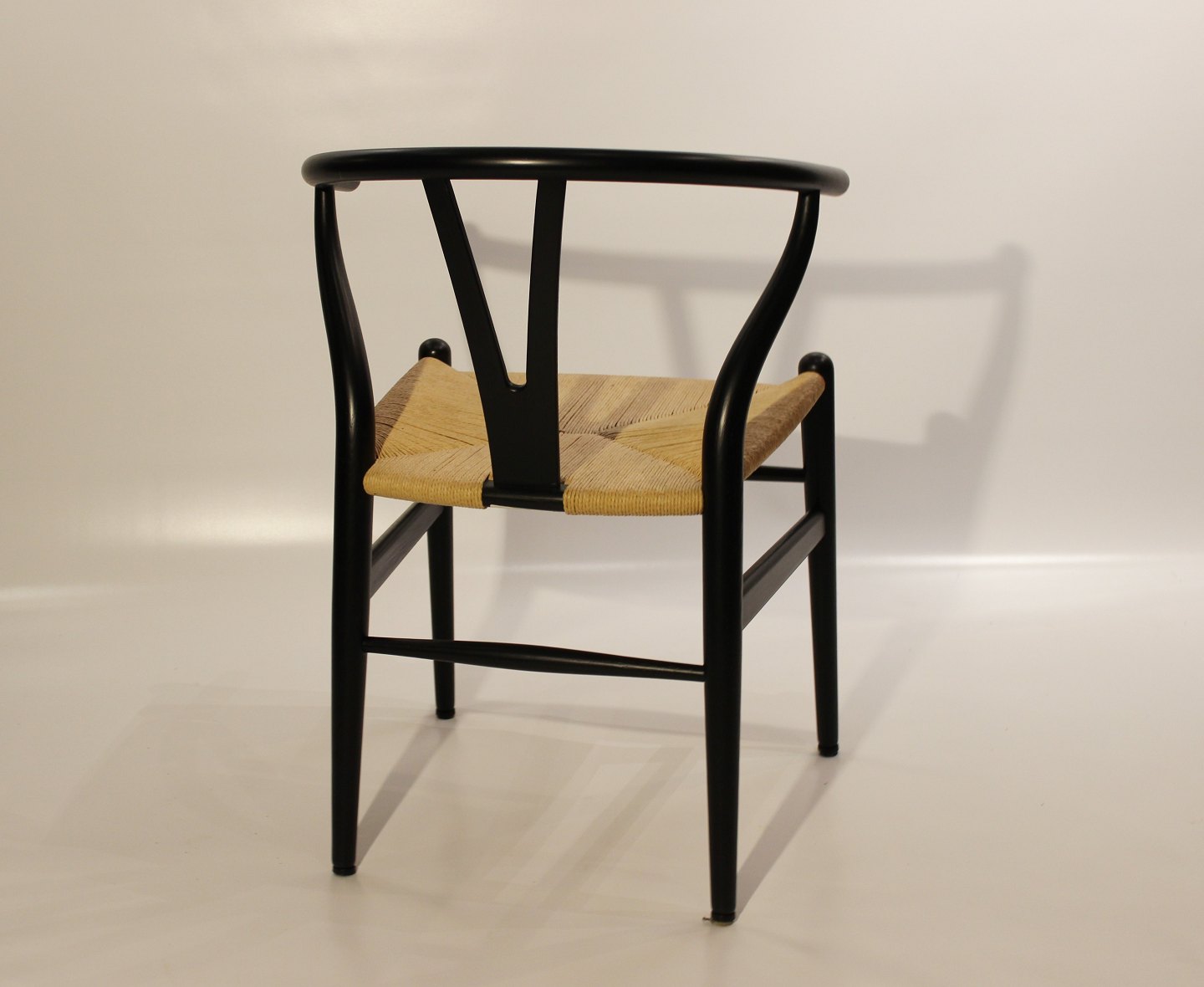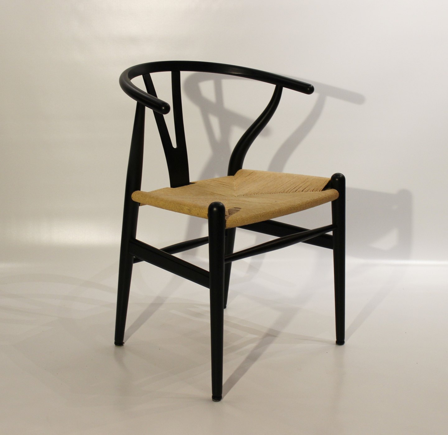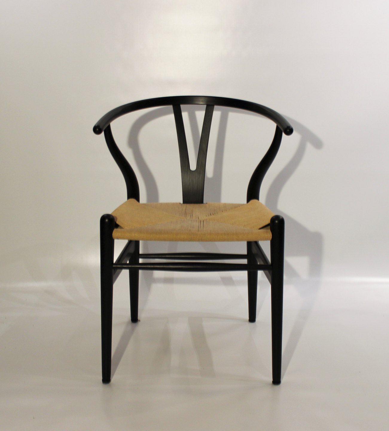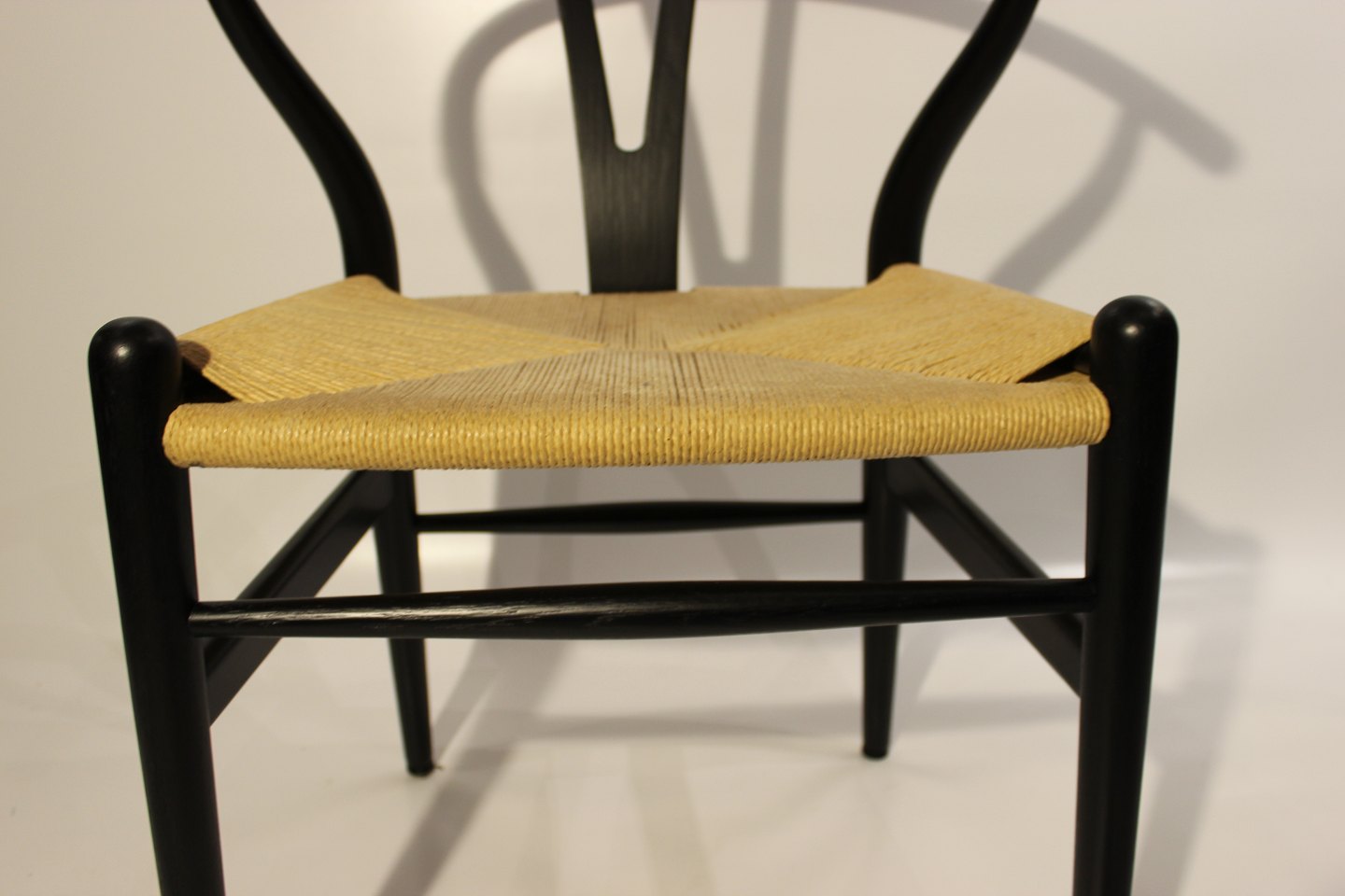 A pair of wishbone chairs, Y-chair, model CH24, designed by Hans J. Wegner in the 1950s and manufactured by Carl Hansen & Son in 2008. The chairs are with papercord seat and black painted ash.