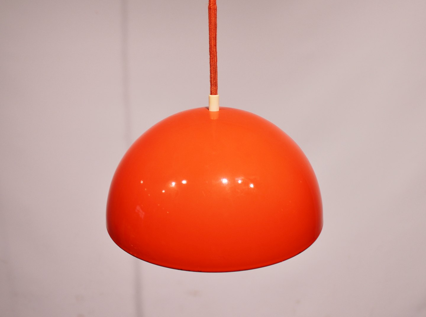 A pair of Flowerpot, model VP1, pendants in orange designed by Verner Panton in 1968 and manufactured in the 1970s.