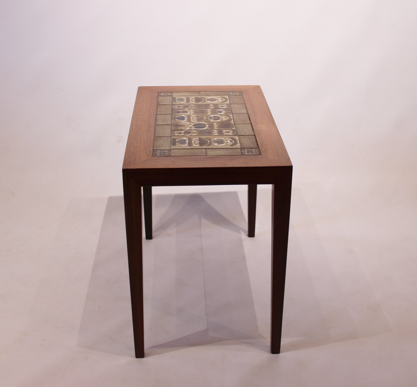 SoldSidetable in rosewood with Royal Copenhagen tiles by Severin Hansen for Haslev Furniture Factory. The table is in great vintage condition.