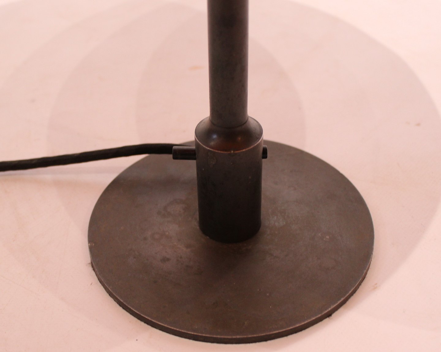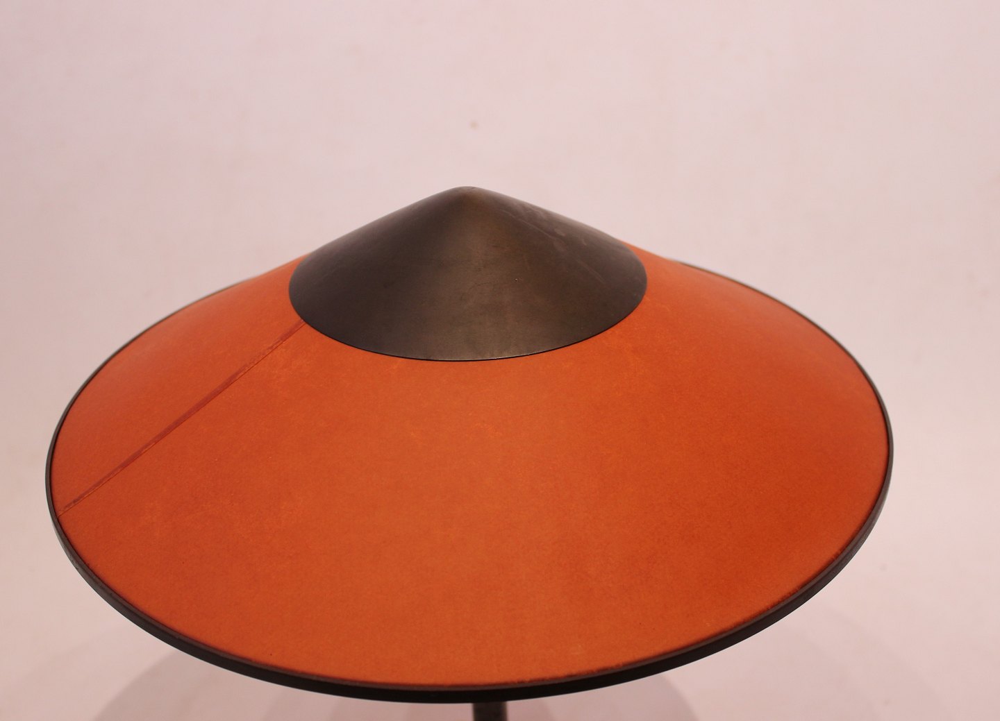 Sold"Kongelys" tablelamp by Fog and Moerup with amber colored shade and frame of burnished brass. Originally called T3 Minor designed by Niels Rasmussen Thykier in 1930, in 1937 it was taken over by Fog and Moerup and renamed "Kongelys". The lamp is in great vintage condition.