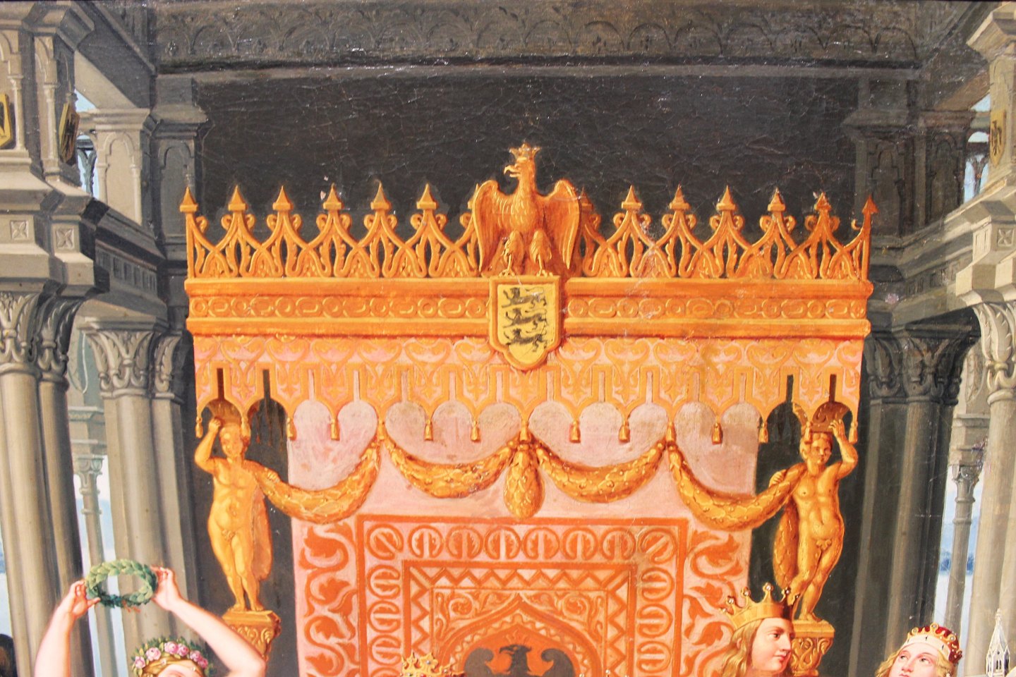SoldOil painting on canvas from the 19th century by the German painter G. Otti. The painting is called "Der Niebelunge Liet", a scene which probably represents the wedding of Attila and the German princess Ildikó.