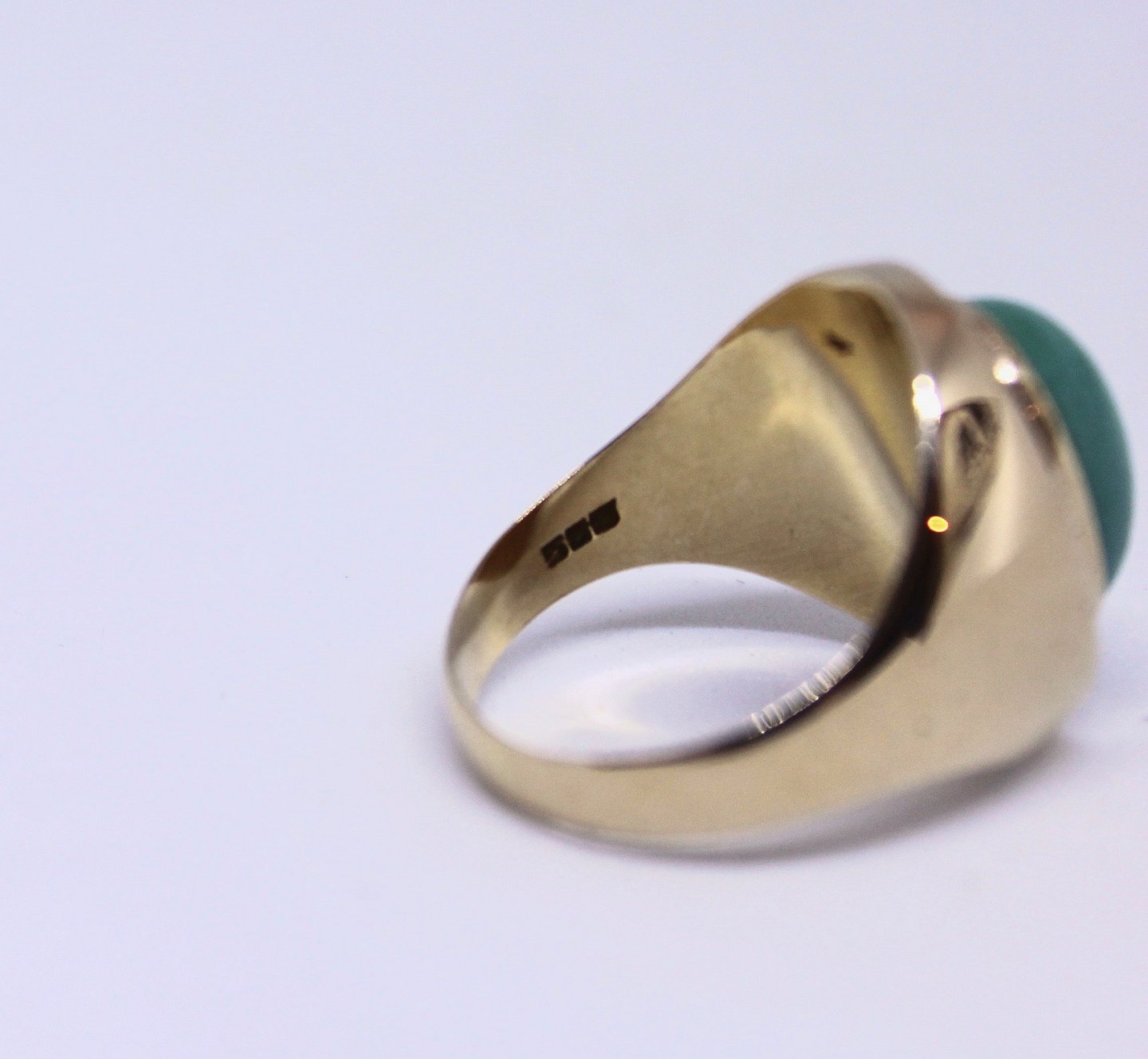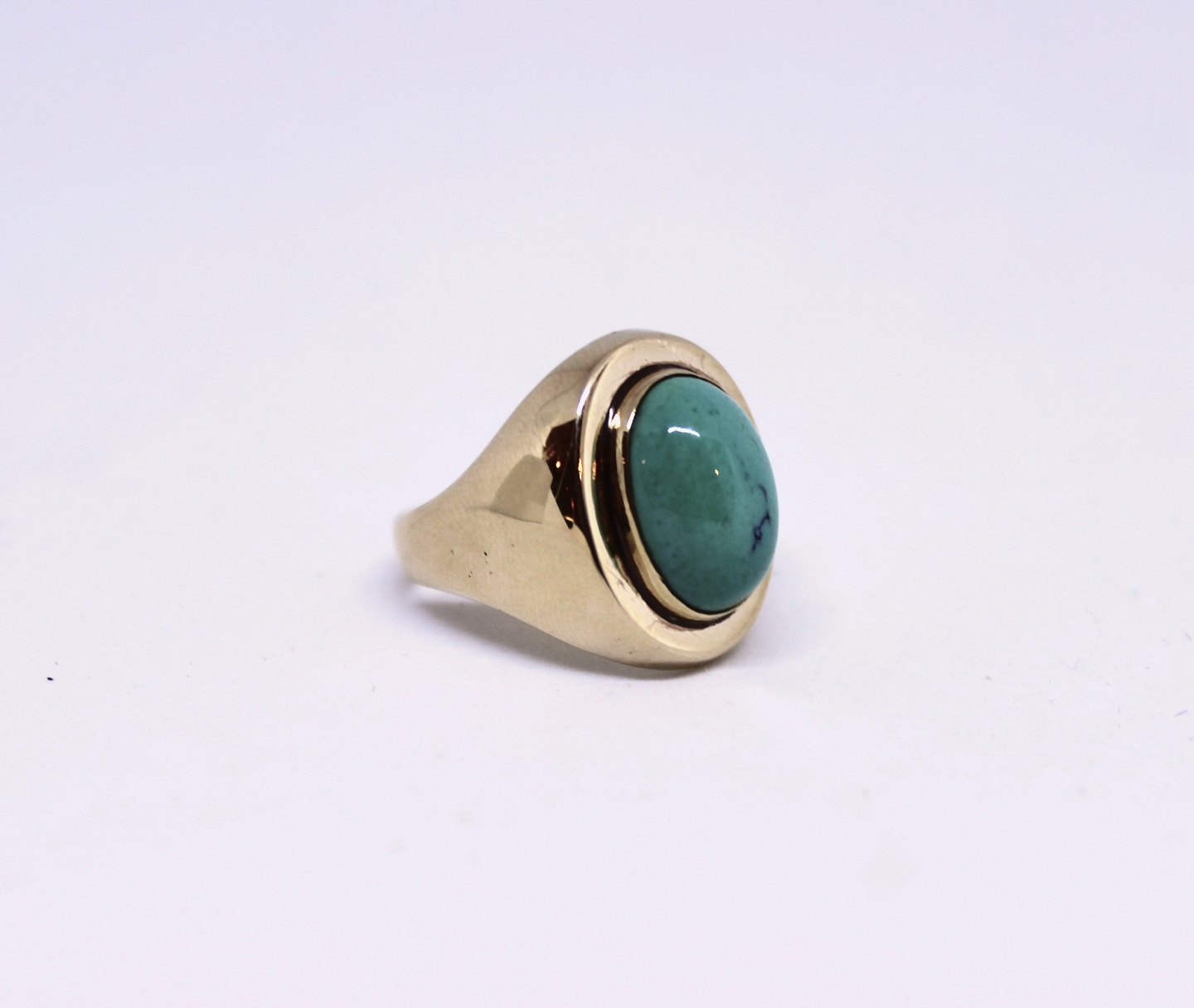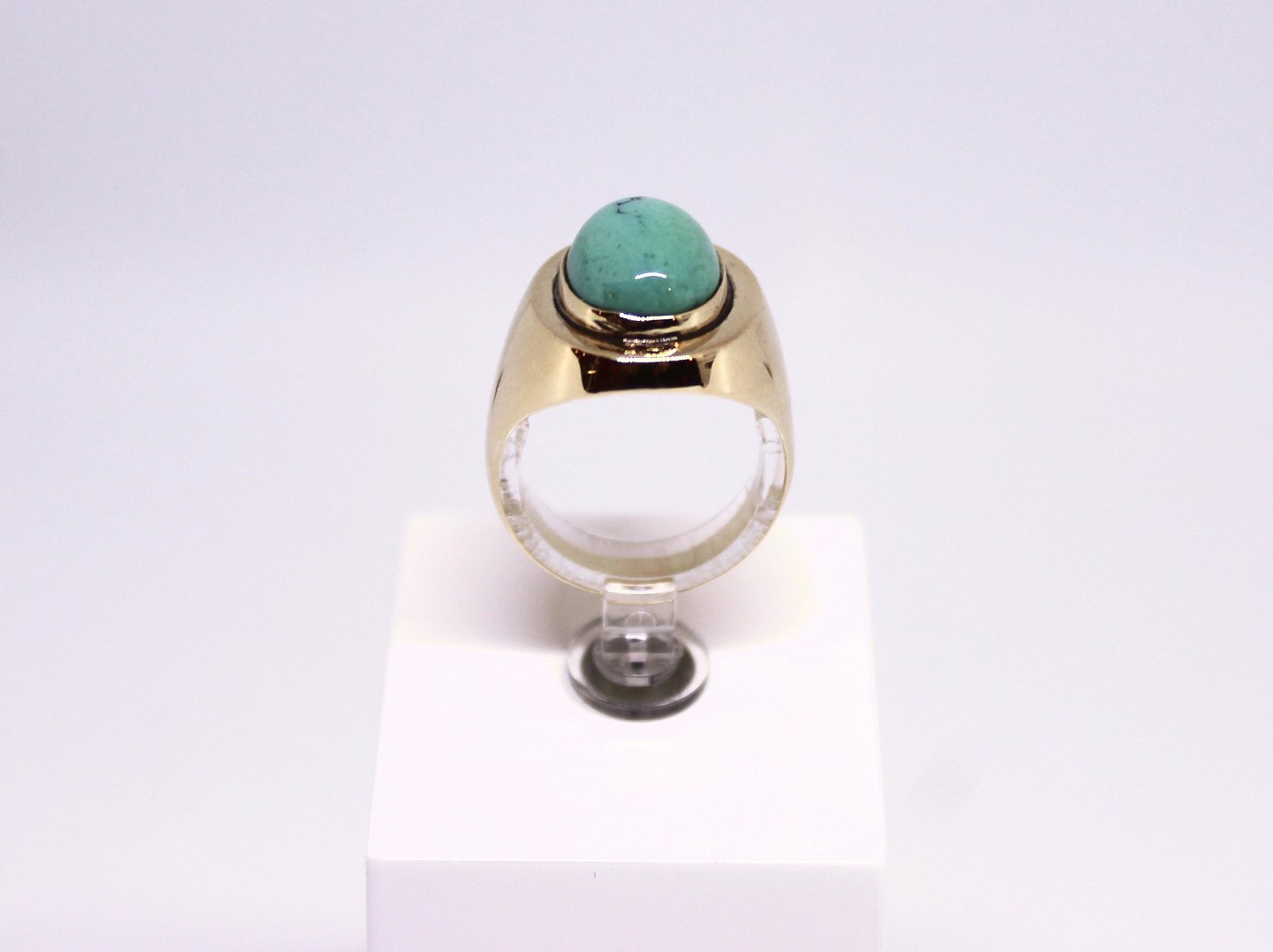 Ring of 14 carat gold with turqouise stone and stamped ESC.