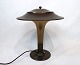 The Torch lamp with stem of amber colored glass and foot and shade of patinated brass, by Fog and Mørup from the 1930s.