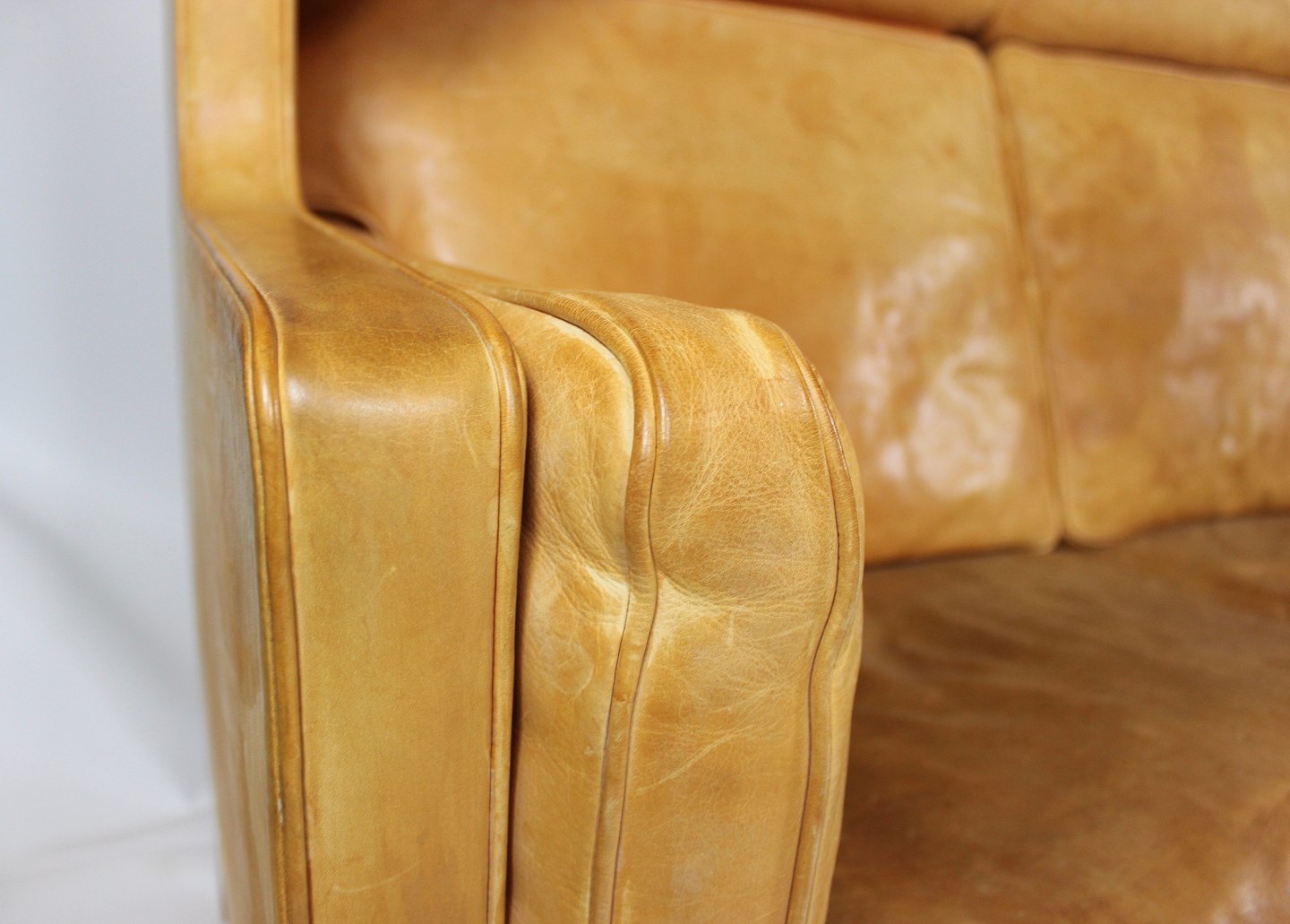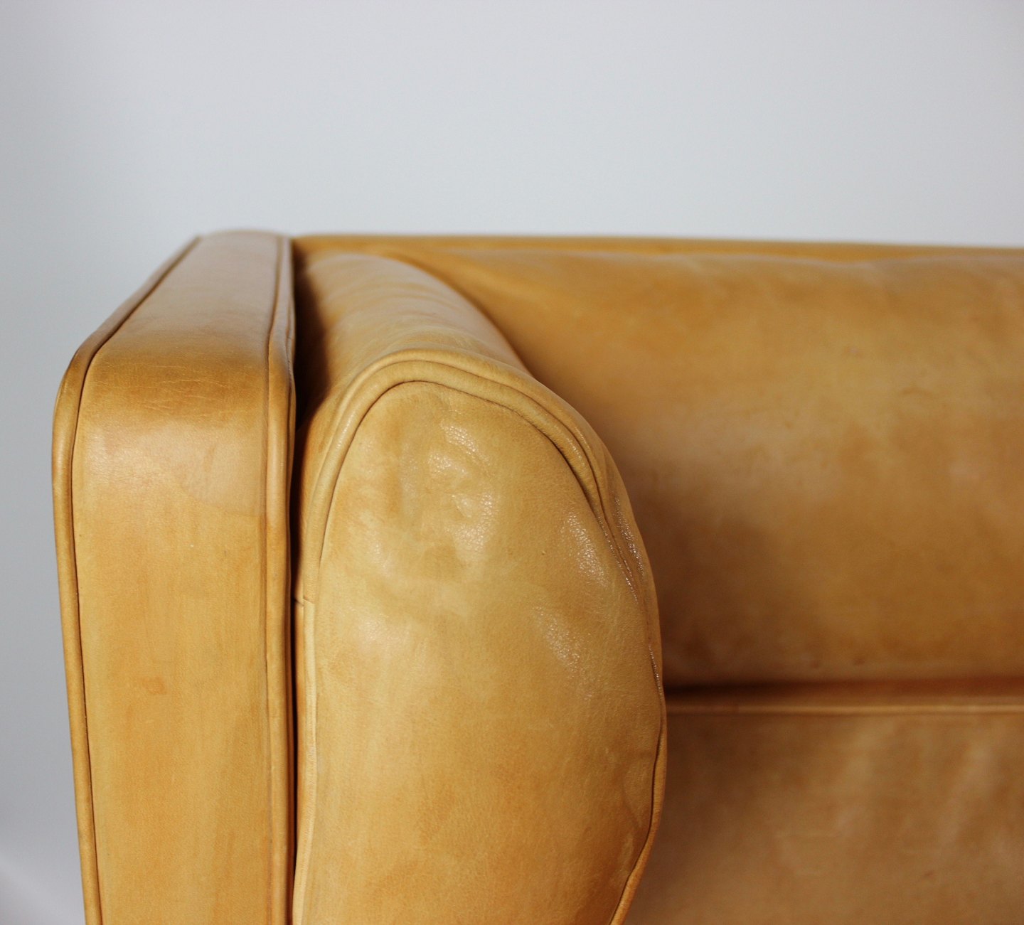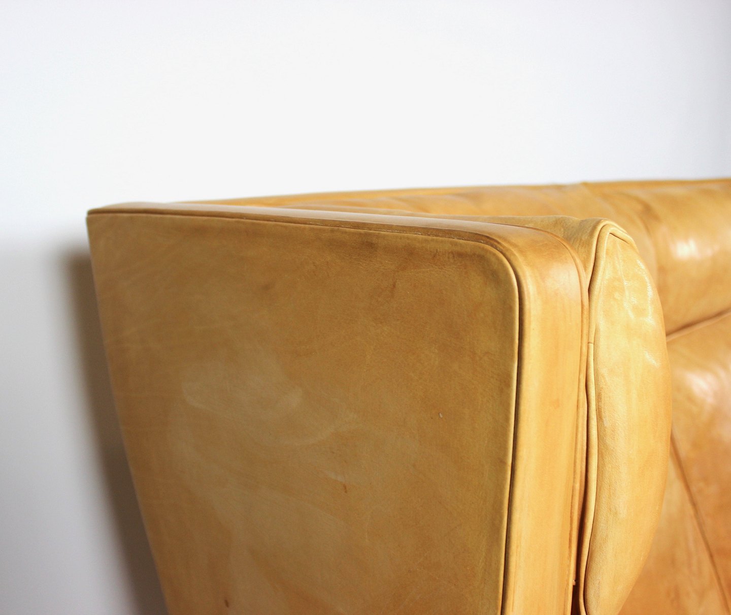Three seater sofa, model Kupe, designed by Børge Mogensen and upholstered with light cognac colored leather. The sofa is in great vintage condition.