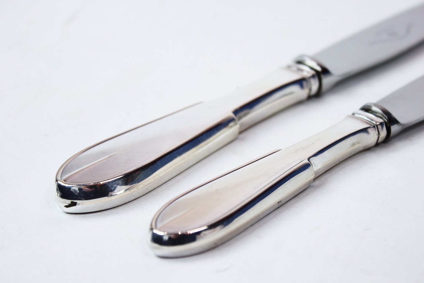 Se prisen i varebeskrivelsenMiddagskniv og frokostkniv i arvesølv nr. 1 af Hans Hansen. Spørg for antal på lager.