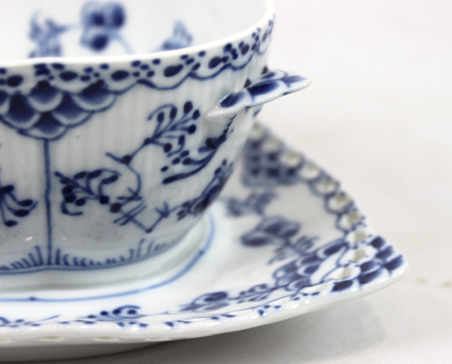 SoldRoyal Copenhagen blue fluted lace sauce-boat and saucer, no.: 1/1106.