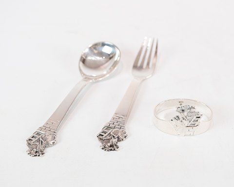 SolgtPålægsgaffel, nr. 45, og marmeladeske, nr. 43, i andet mønster af Georg Jensen. 675 kr for hvert ting.