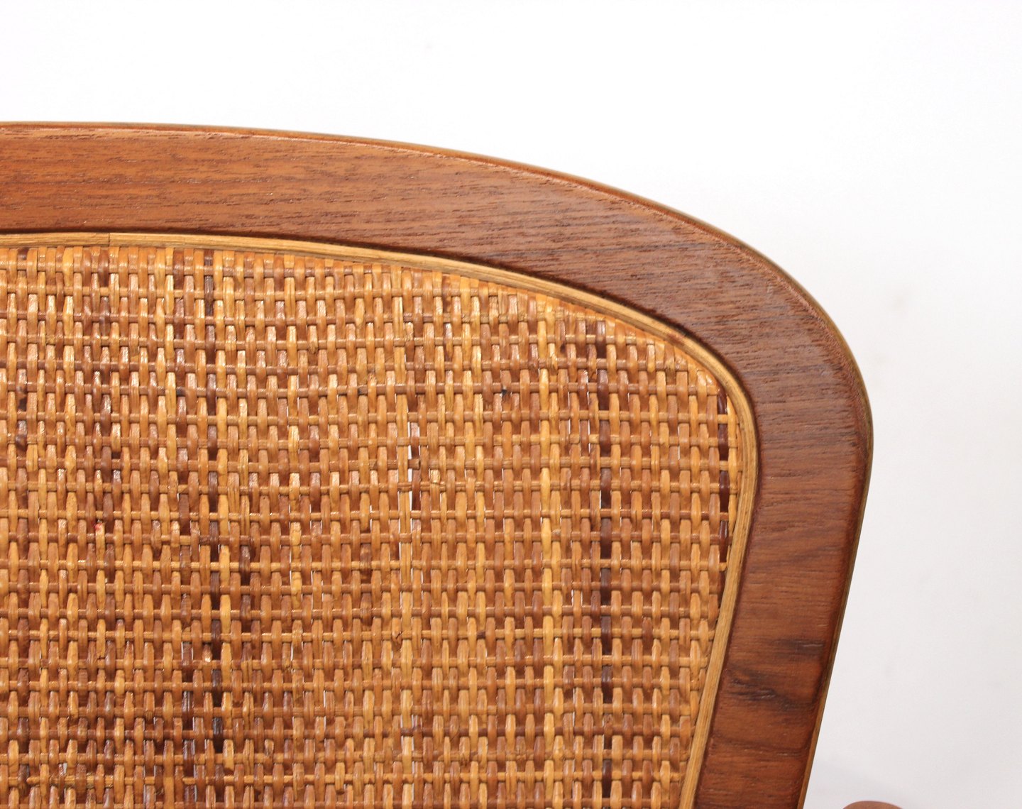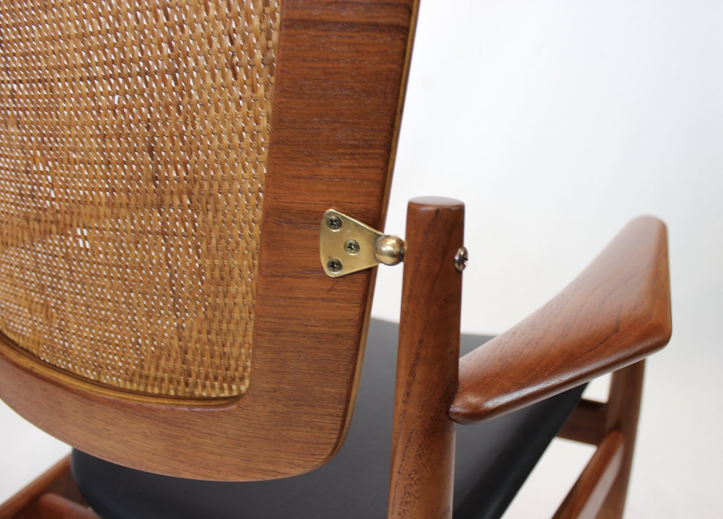 Armchair, model FD, designed by Arne Vodder and manufactured France & Son from the 1960s. The chair is of teak with seat of black leather and back of paper cord.