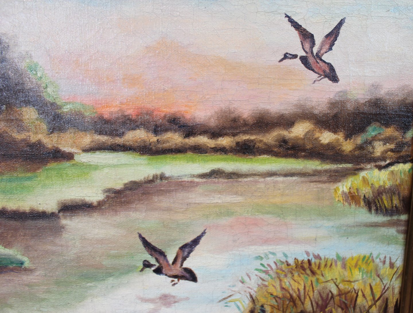 SoldPainting with nature motif and gilded frame signed S.R. The painting is in good vintage condition.