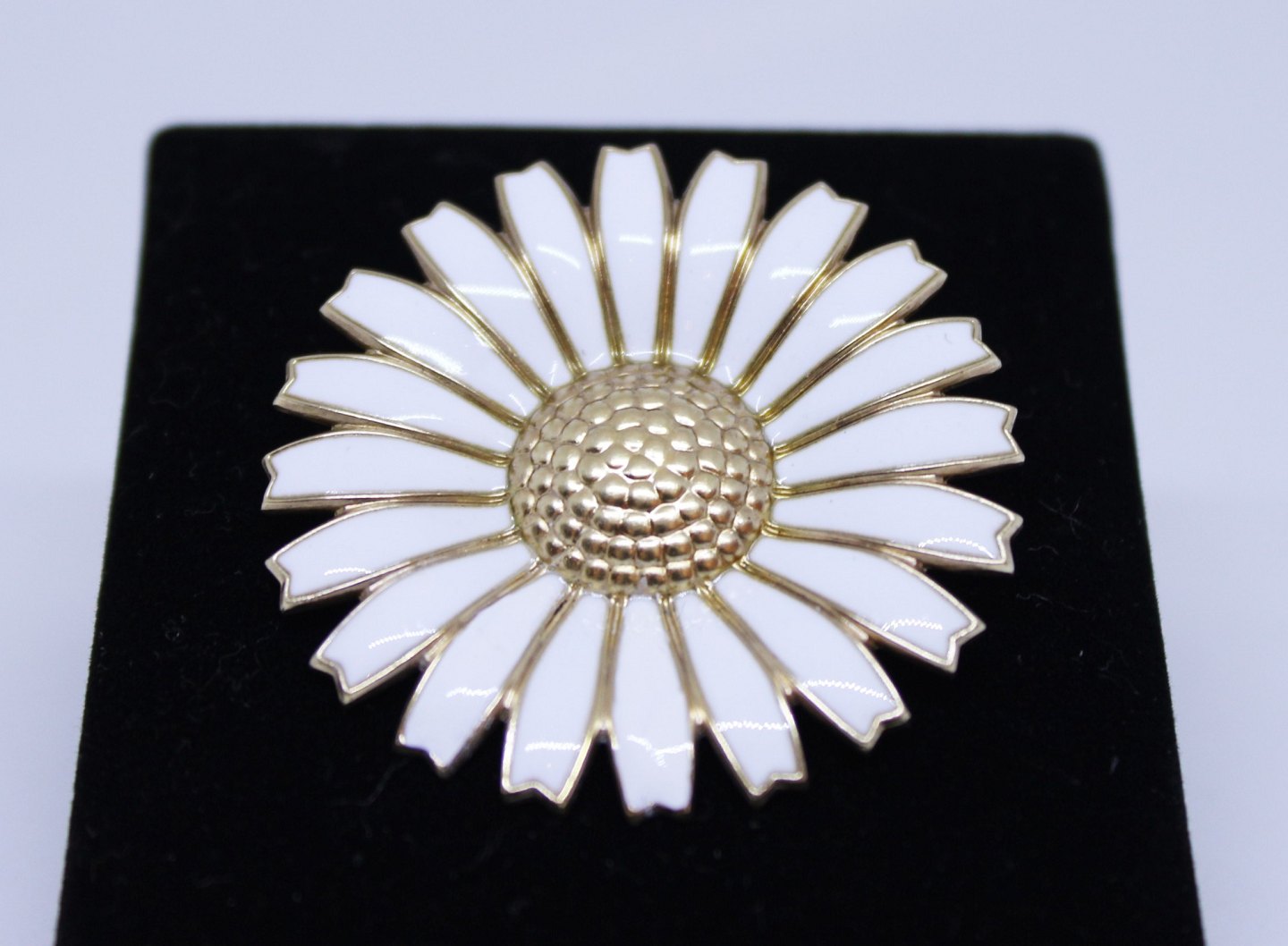 Daisy brooch of gilded 925 sterling silver and white enamel by Georg Jensen.