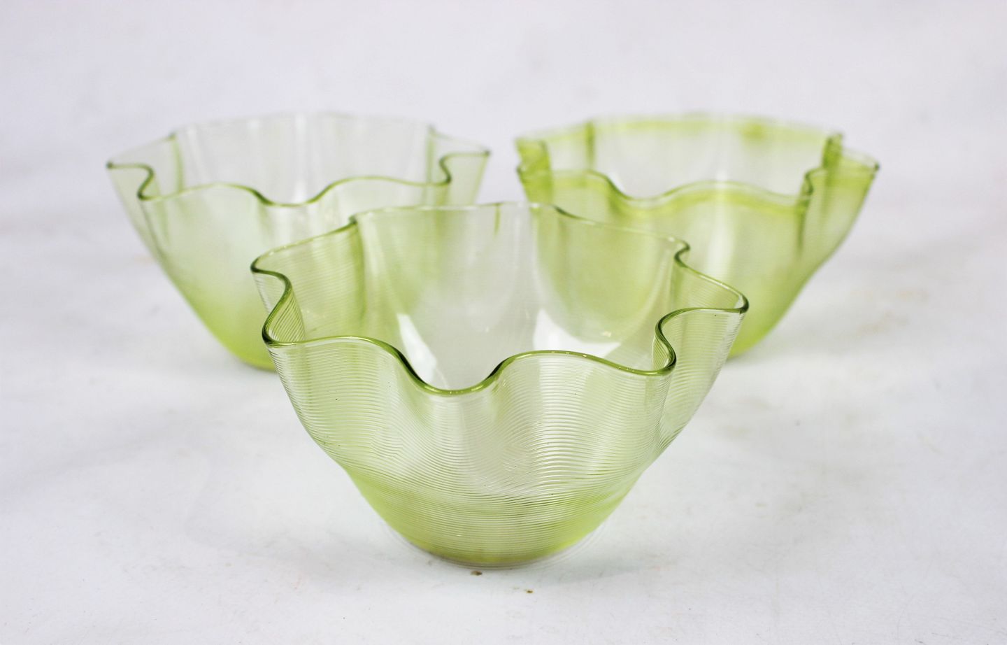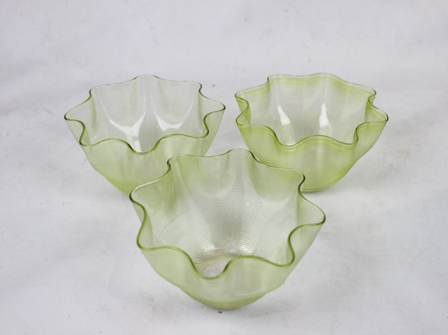 Skylleskåle formgivet af lysegrønt glas af Kastrup Glasværk fra 1930erne. 12 stk. på lager.