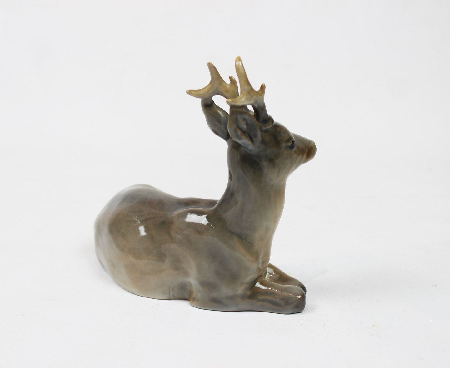 Royal Copenhagen porcelain figure, lying deer, no.: 756, by Knud Kyhn.