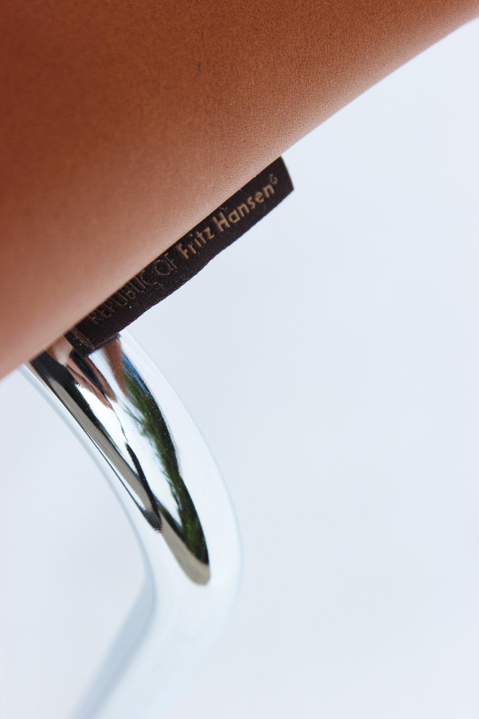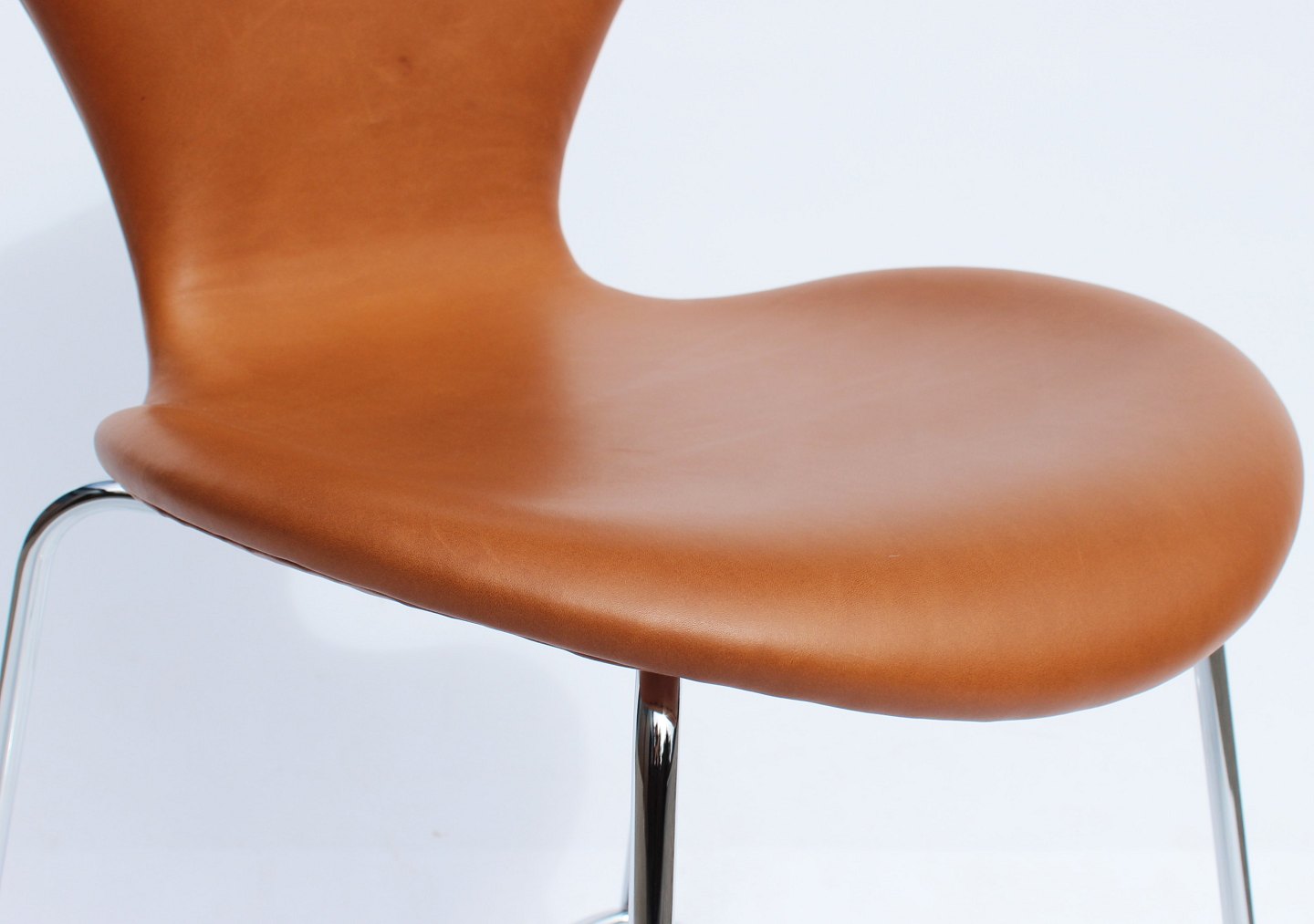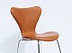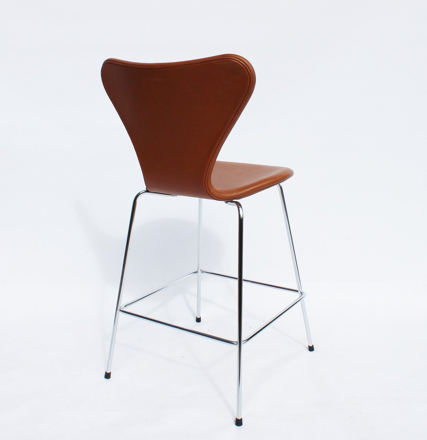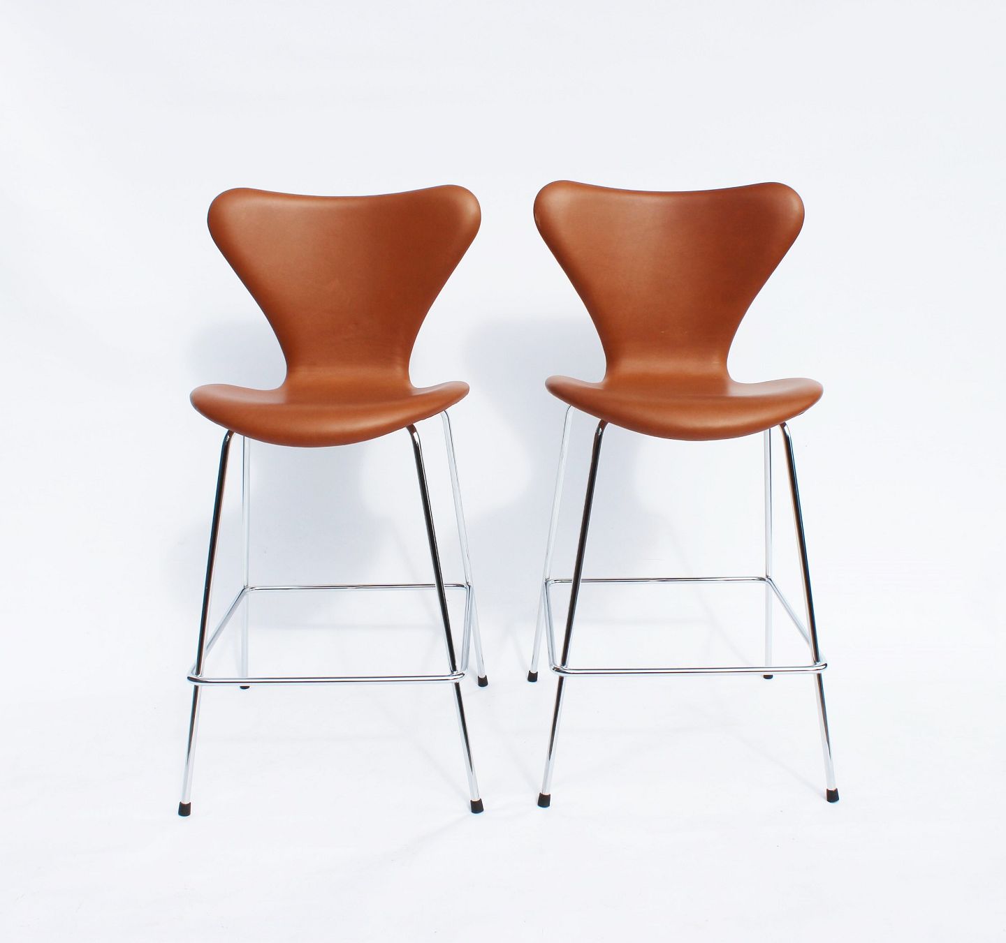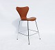 A pair of Seven bar stools, model 3187, with walnut elegance leather by Arne Jacobsen and Fritz Hansen.
