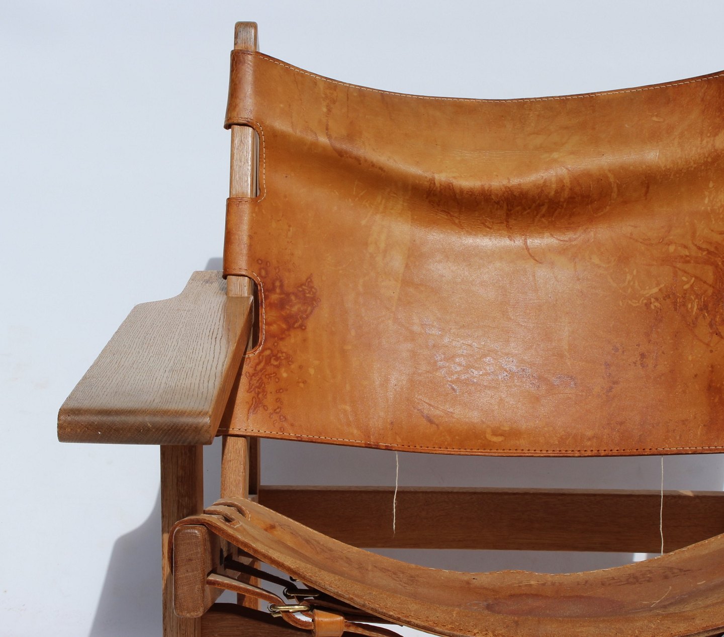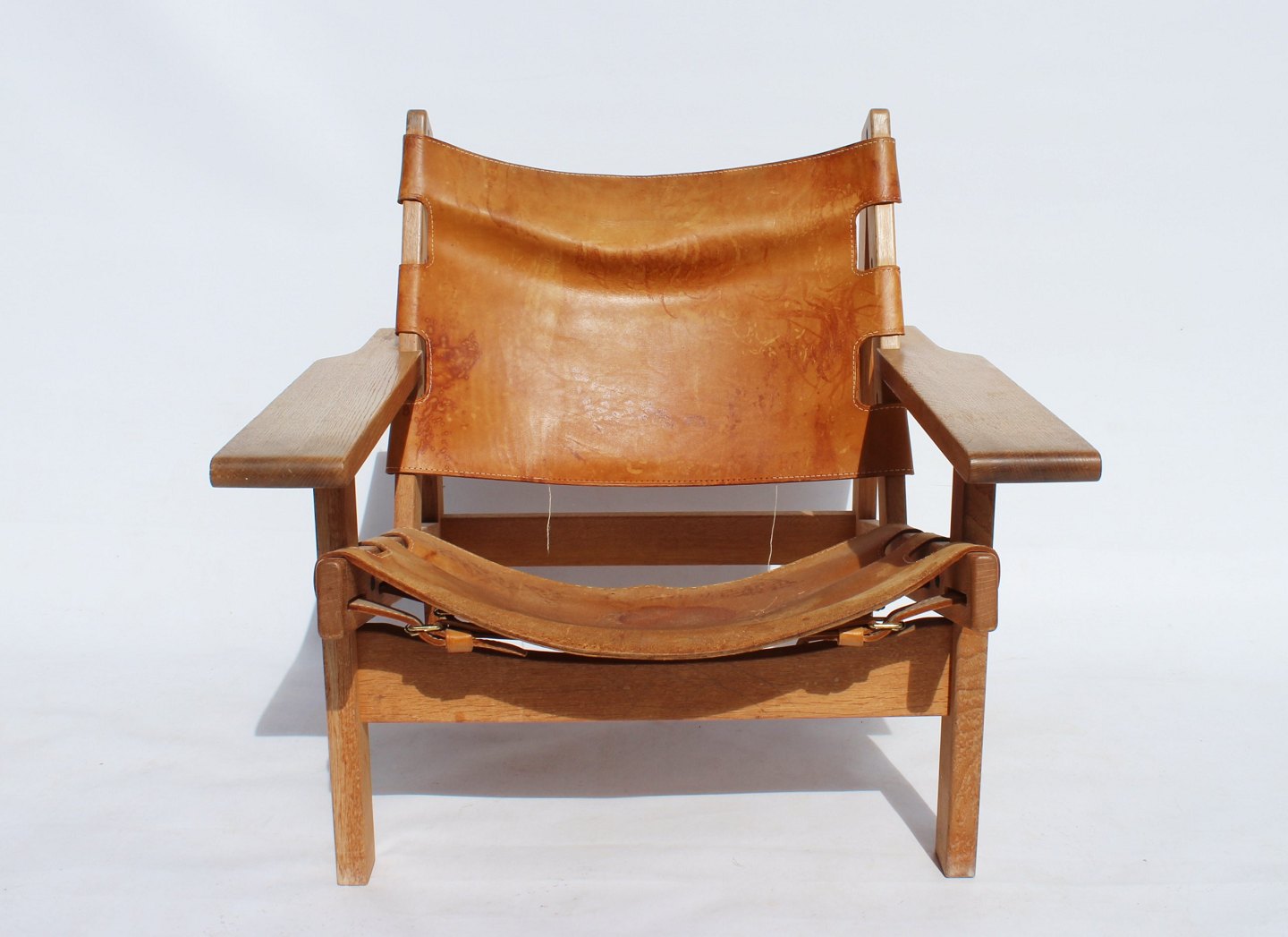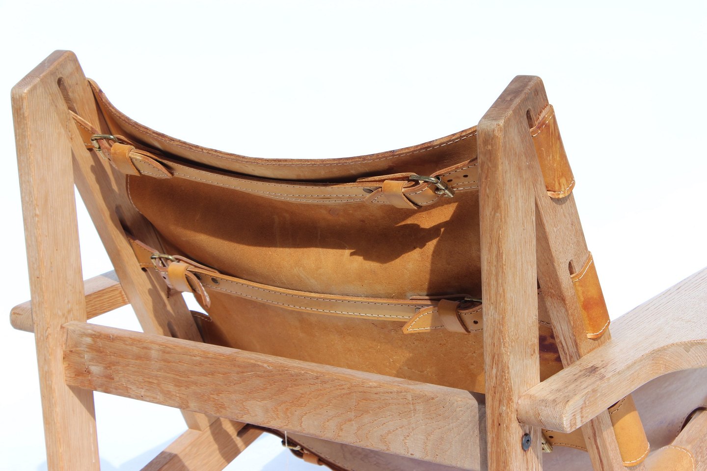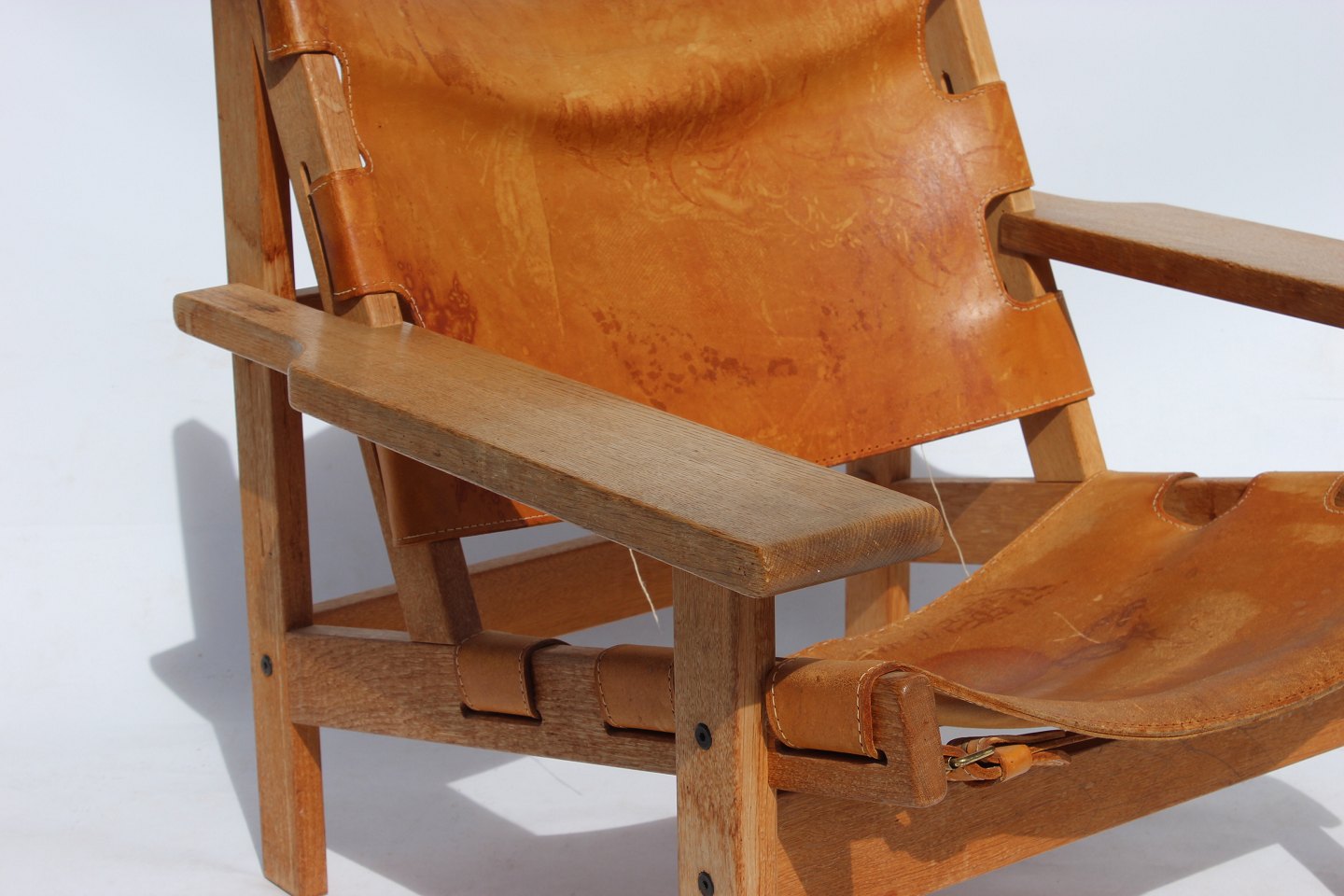 Lænestol, model 168, i egetræ og kernelæder af Kurt Østervig.