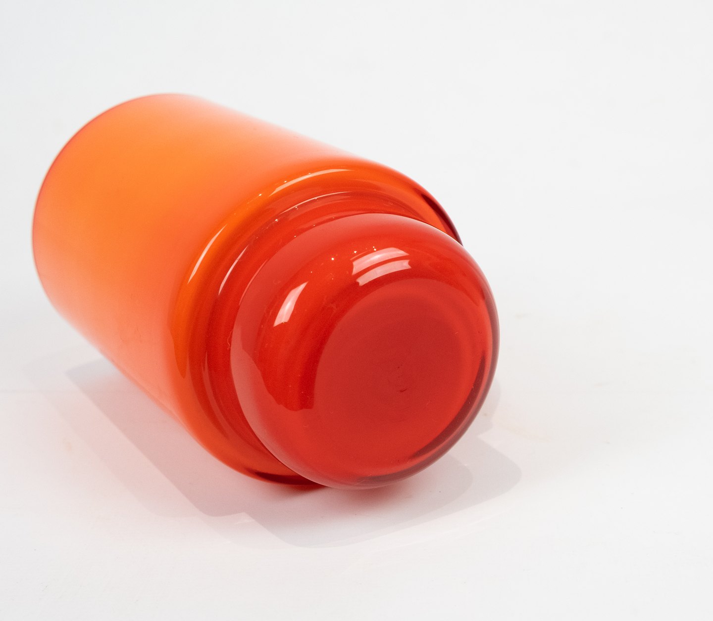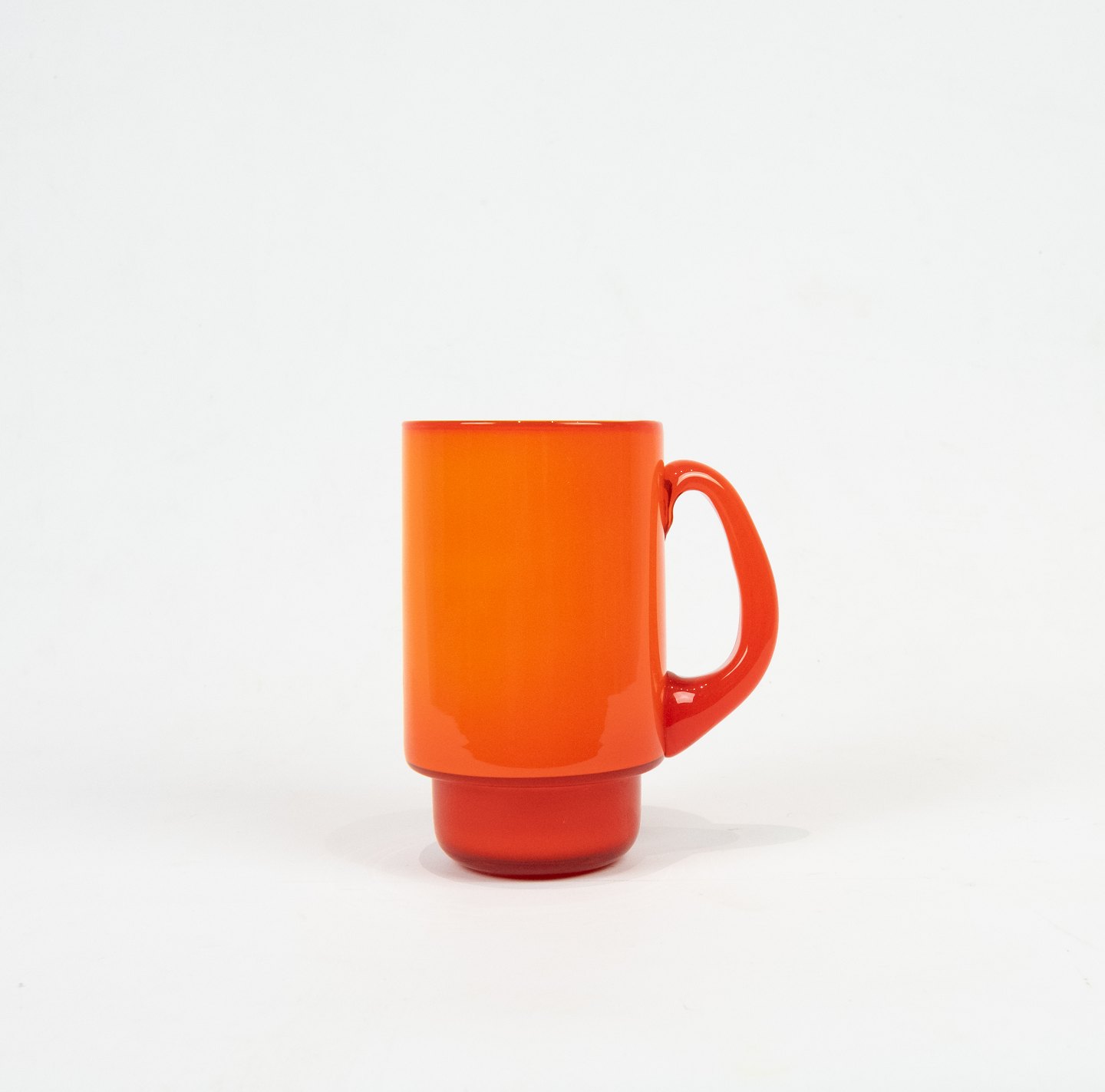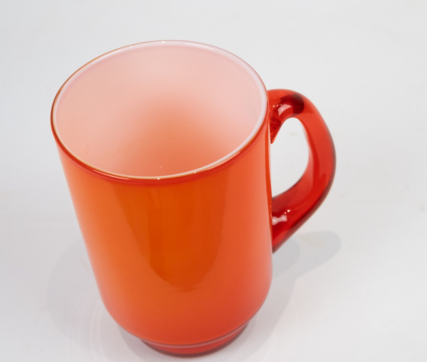 Rødt glaskrus med hvid opal glas indvendig fra Palet serien af Michael Bang for Holmegaard.