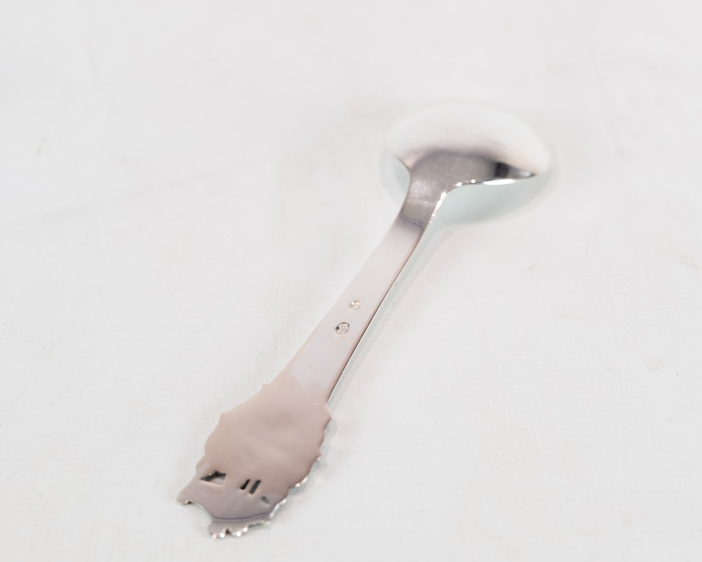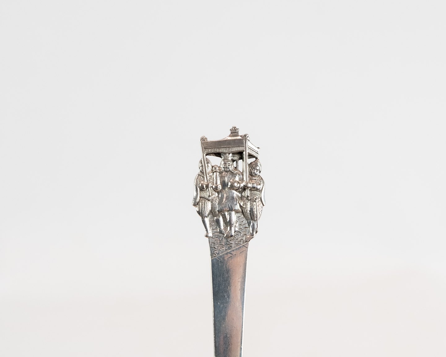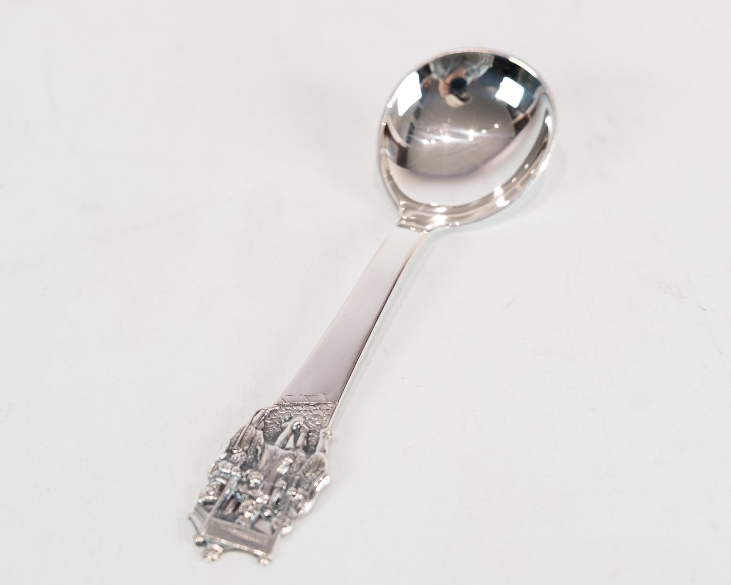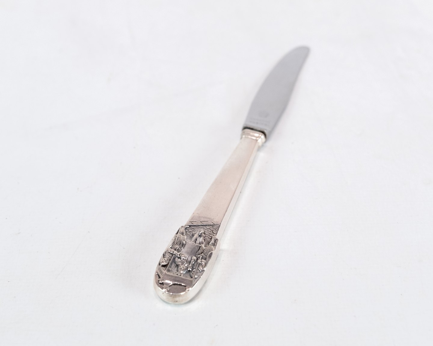 SoldTwo children's spoon, and knife and fork with the motif of H.C. Andersen's The Emperors New Clothes in hallmarked silver.