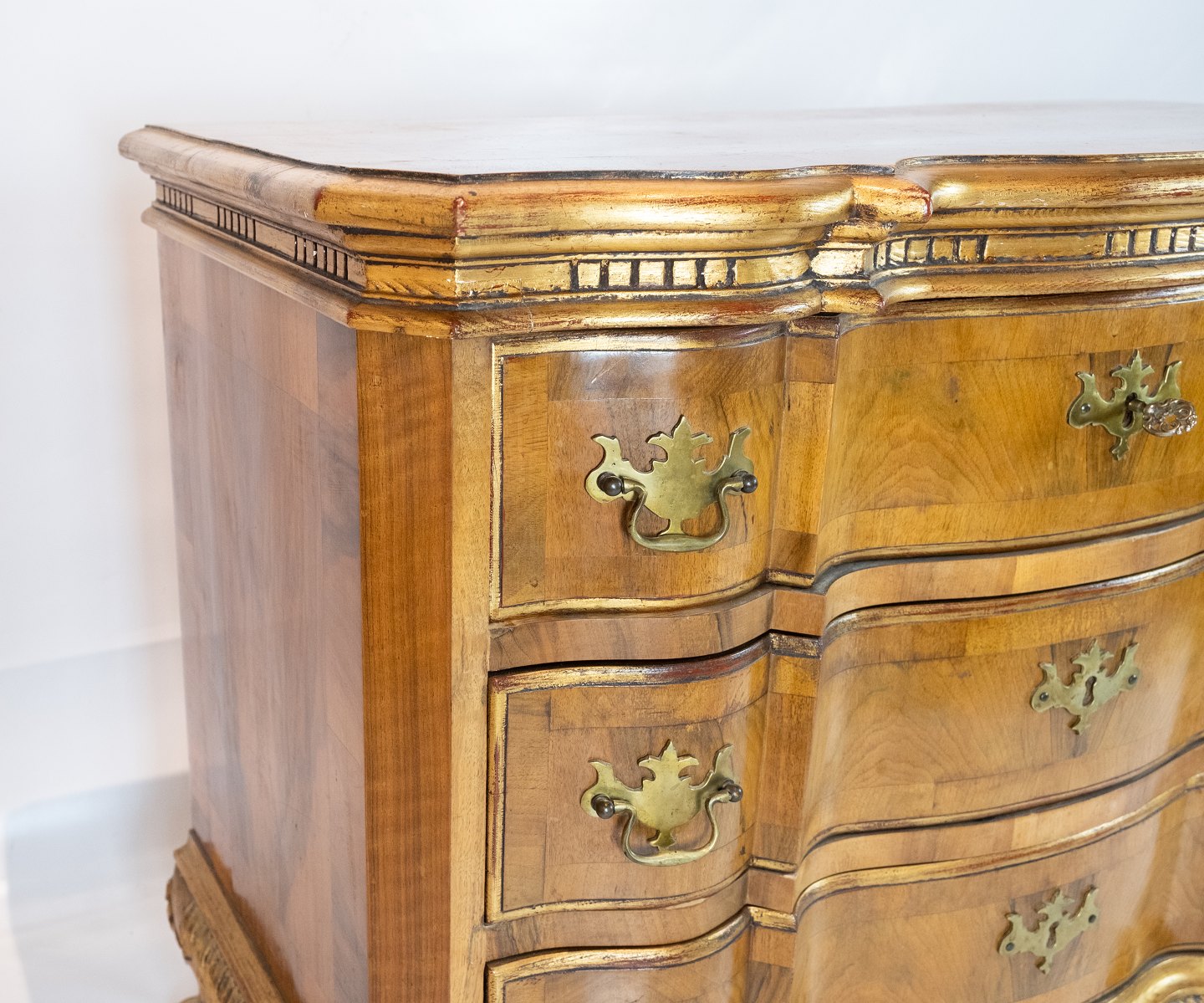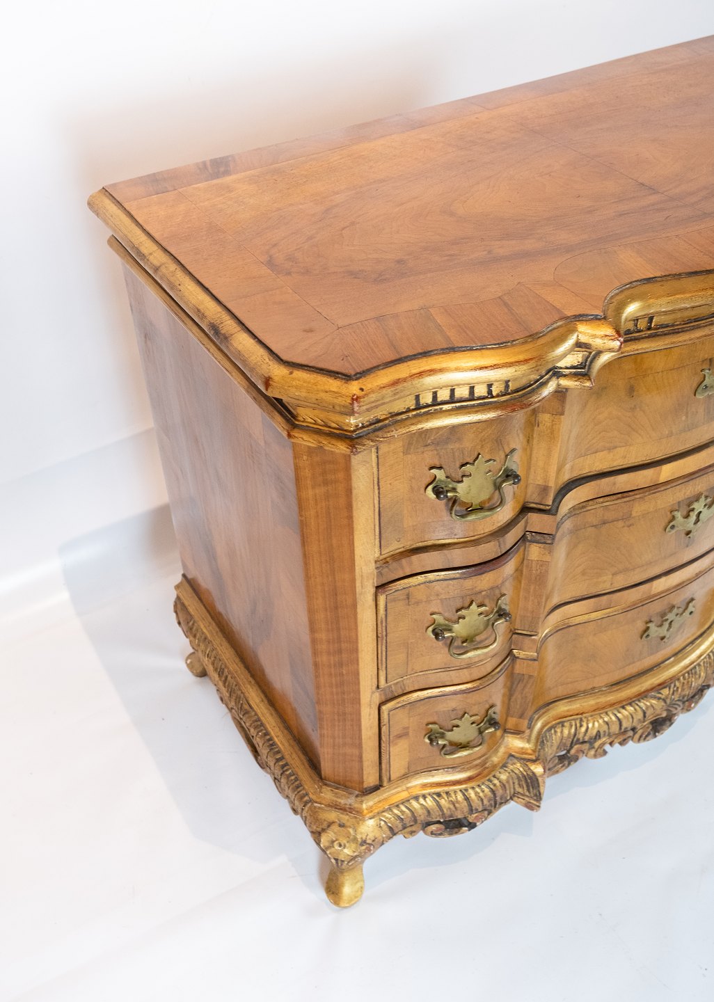 Kontakt os vedrørende prisKommode af poleret valnøddetræ dekoreret med forgyldning og håndtag af messing fra 1860erne. Møblet er i flot brugt stand.
