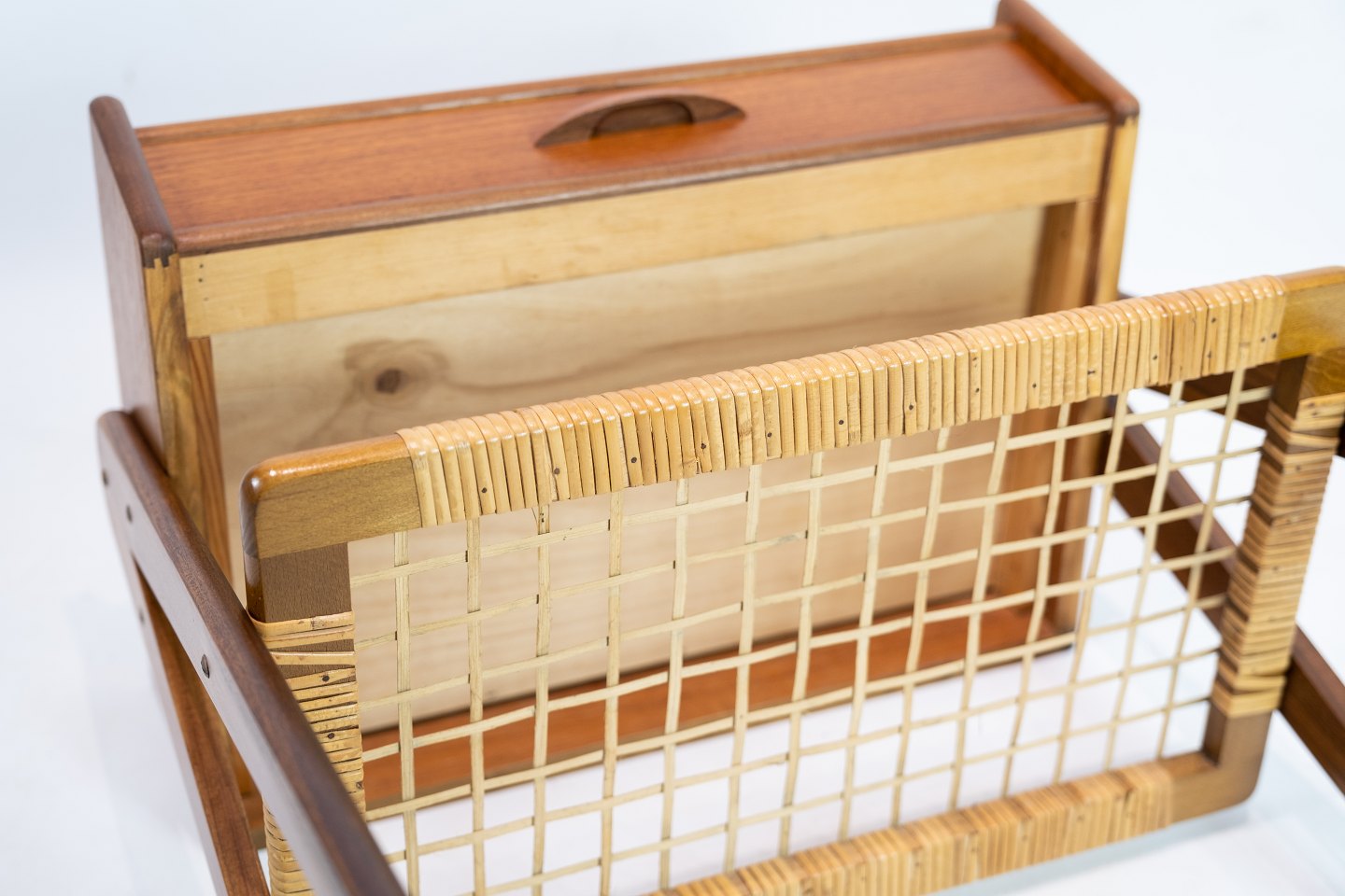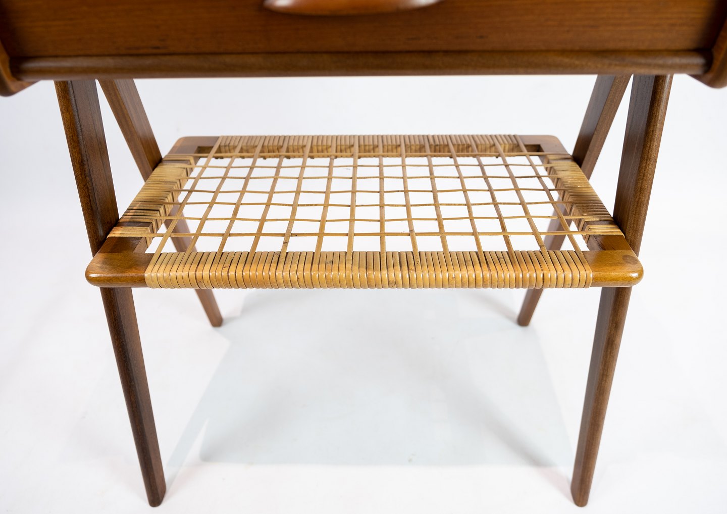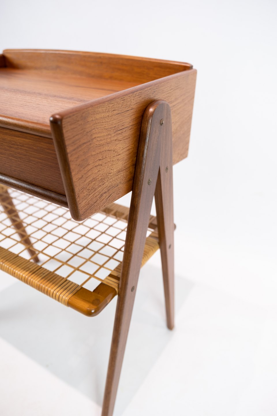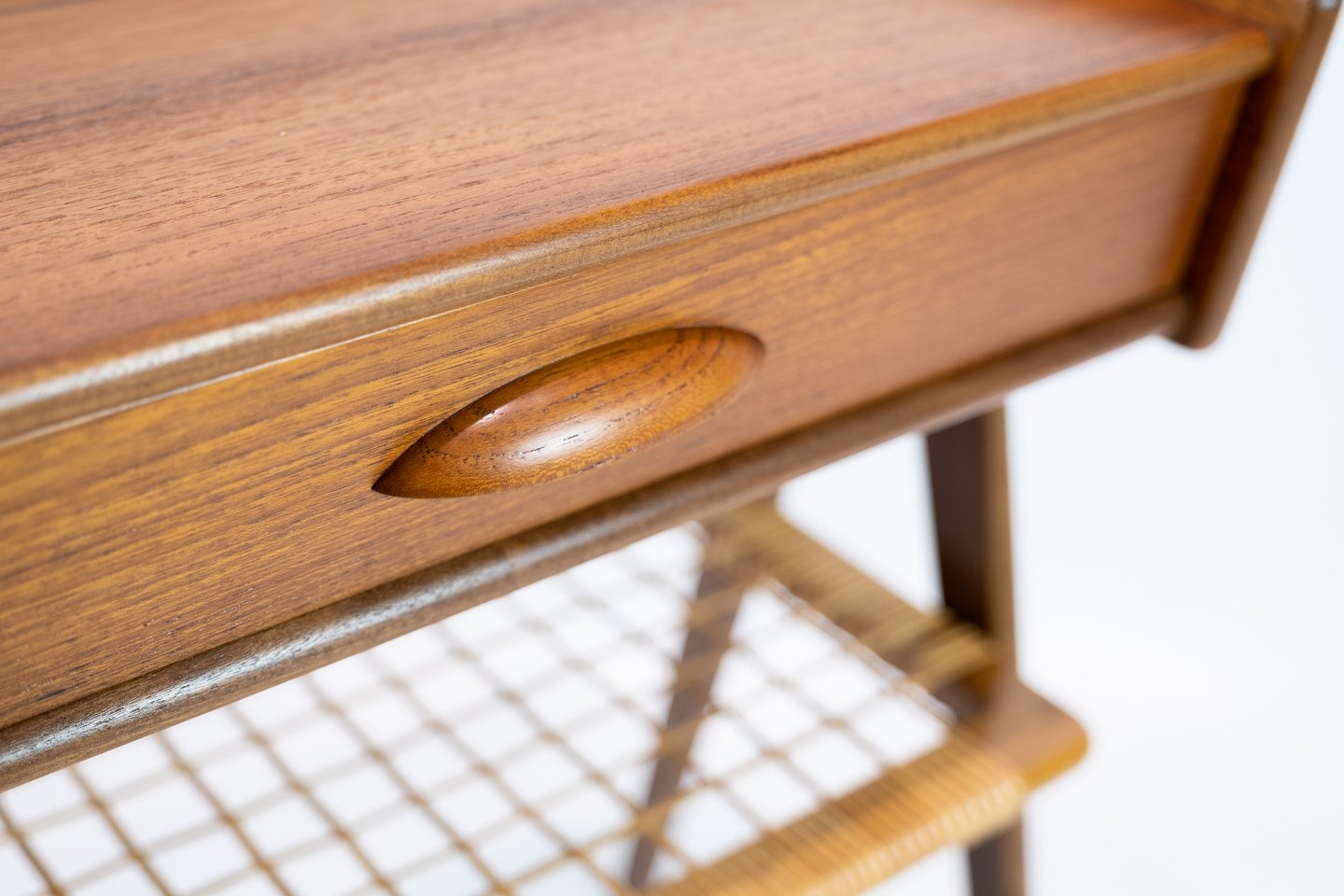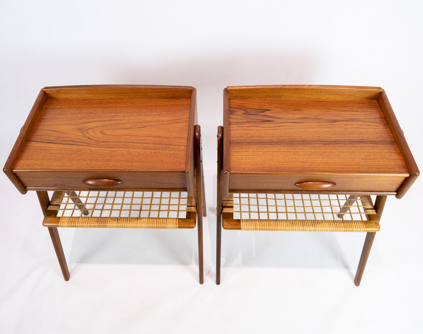 SoldA pair of side tables in teak with paper cord shelf of danish design from the 1960s. The tables are in great vintage condition.