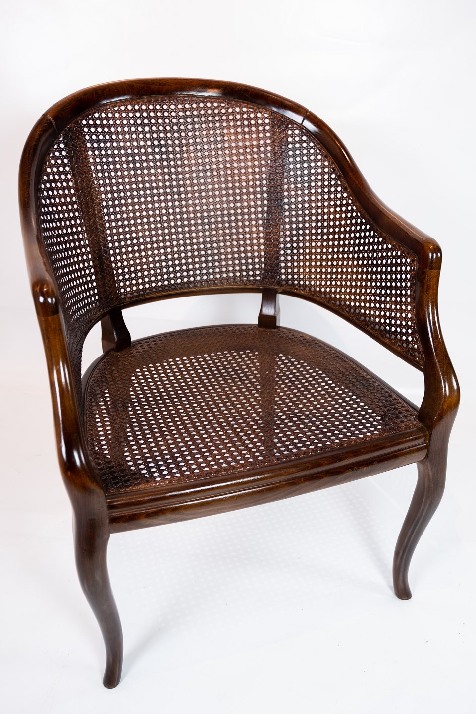 Armchair of mahogany and upholstered with light green fabric from the 1920s. The chair is in great condition.