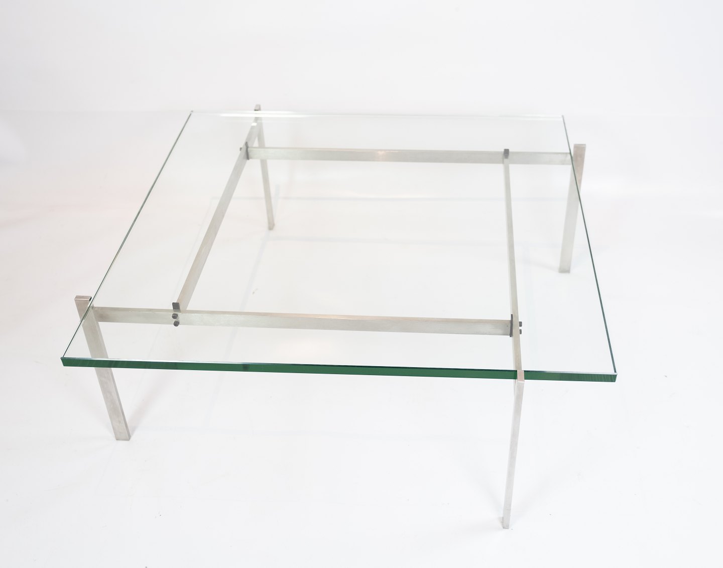SoldCoffee table, model PK61, of glass and stainless steel designed by Poul Kjærholm and Manufactured by Fritz Hansen. The table is in great vintage condition.