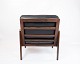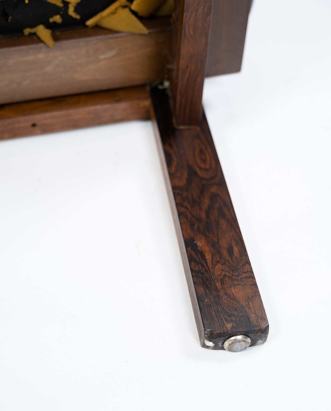 The warm color and natural pattern of the rosewood gives the armchairs a luxurious look and a feeling of solidity and durability. The wood's beautiful grain structure emphasizes the fine craftsmanship that is characteristic of Danish design.