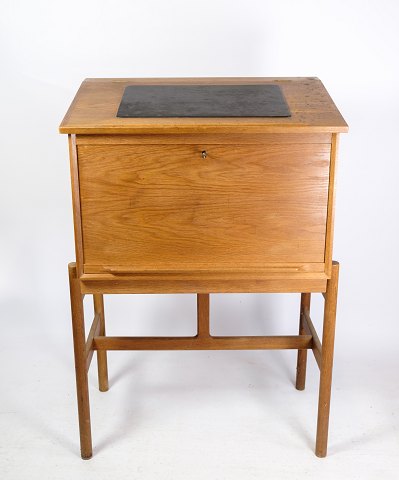 Med sin velproportionerede størrelse og rummelige bordplade tilbyder dette skrivebord en behagelig arbejdsstation til både hjem og kontor. Det er et klassisk møbelstykke, der bringer en tidløs elegance til enhver indretning og fortsætter med at være et eftertragtet stykke blandt samlere og beundrere af dansk design.