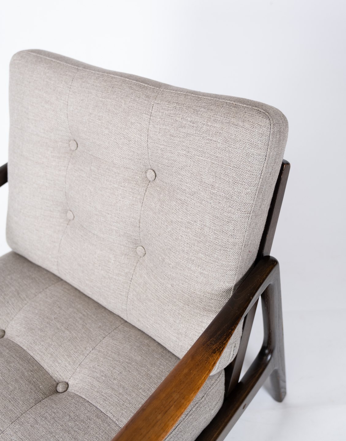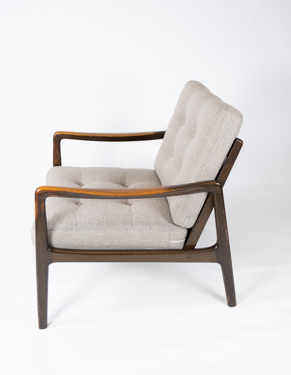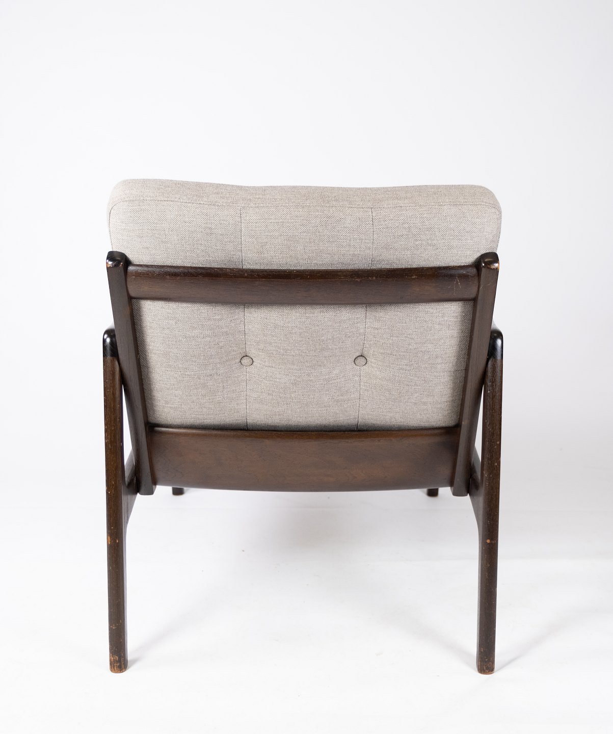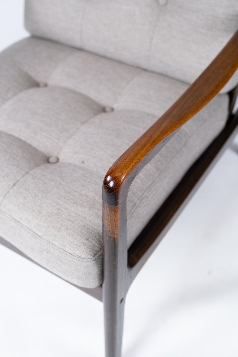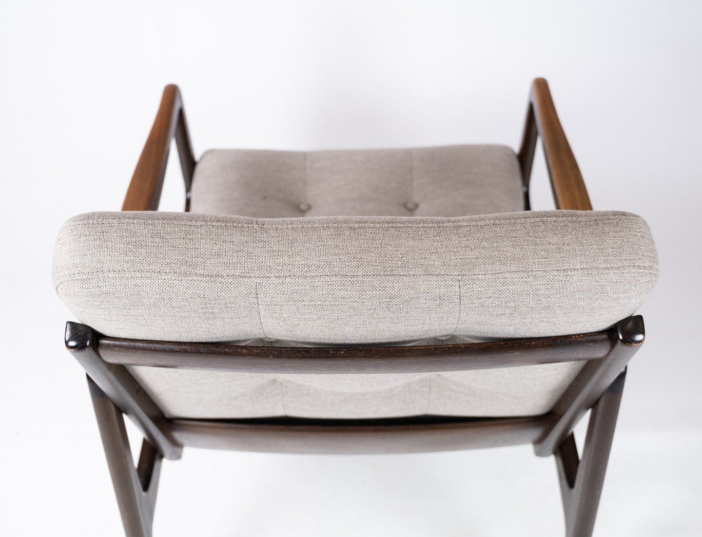 This Easy Chair in teak and newly upholstered gray wool cover, designed by Kai Kristiansen from the 1960s, is a timeless piece of furniture that exudes comfort and elegance. The chair is a perfect combination of aesthetics and functionality and will add a touch of Scandinavian design heritage to any interior.