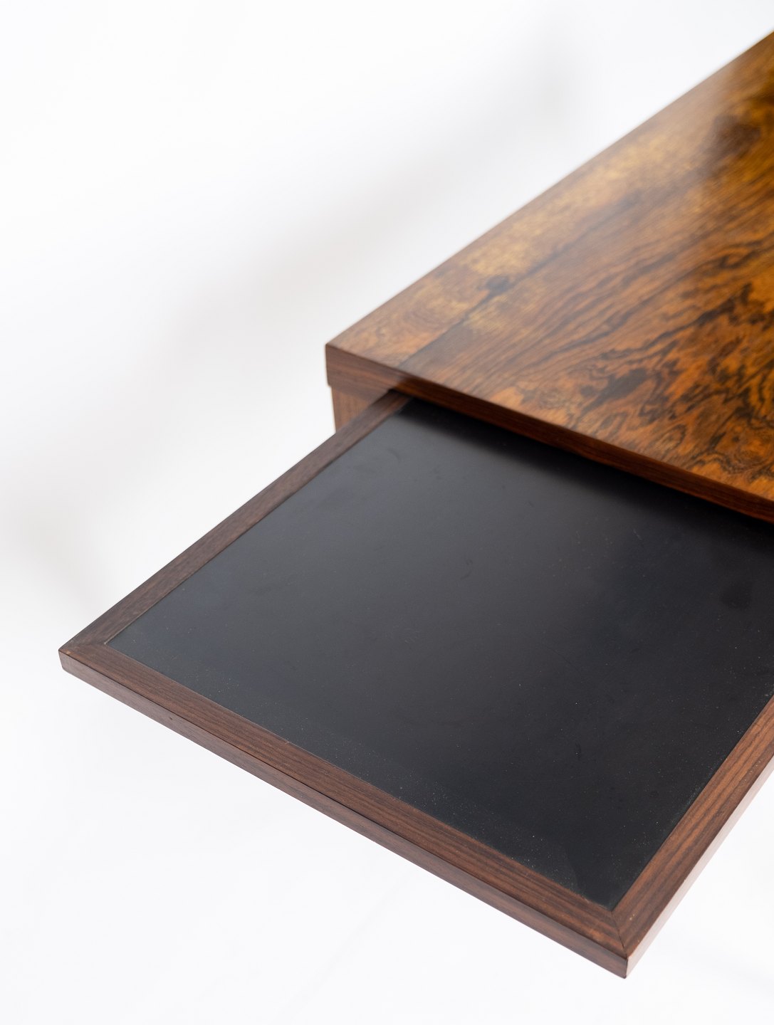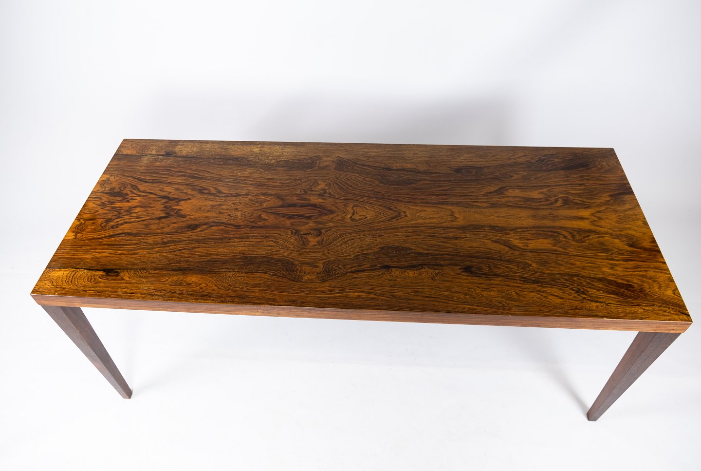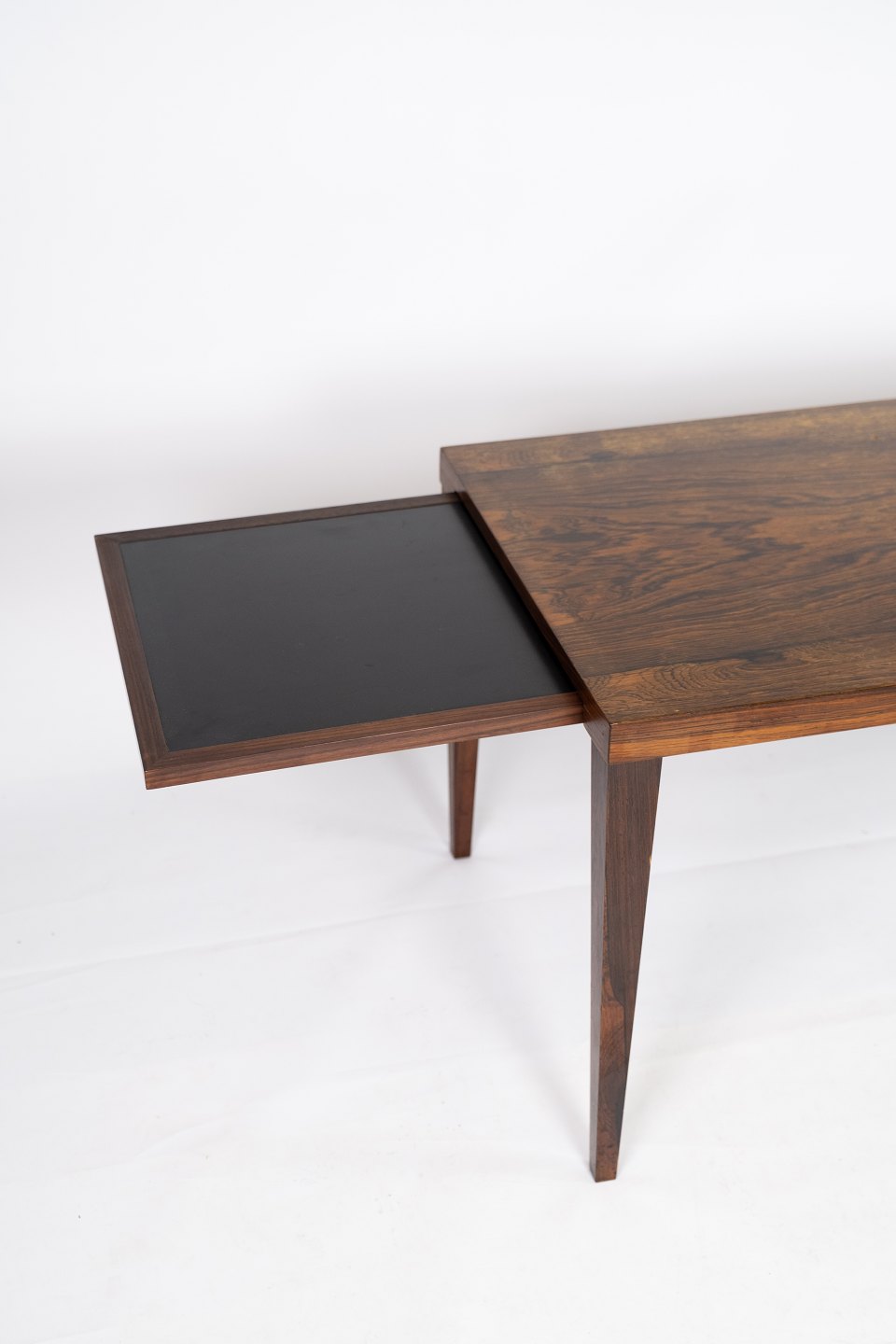 SoldOblong coffee table with extension leaf in rosewood of Danish Design manufactured at Silkeborg furniture factory in the 1960s.